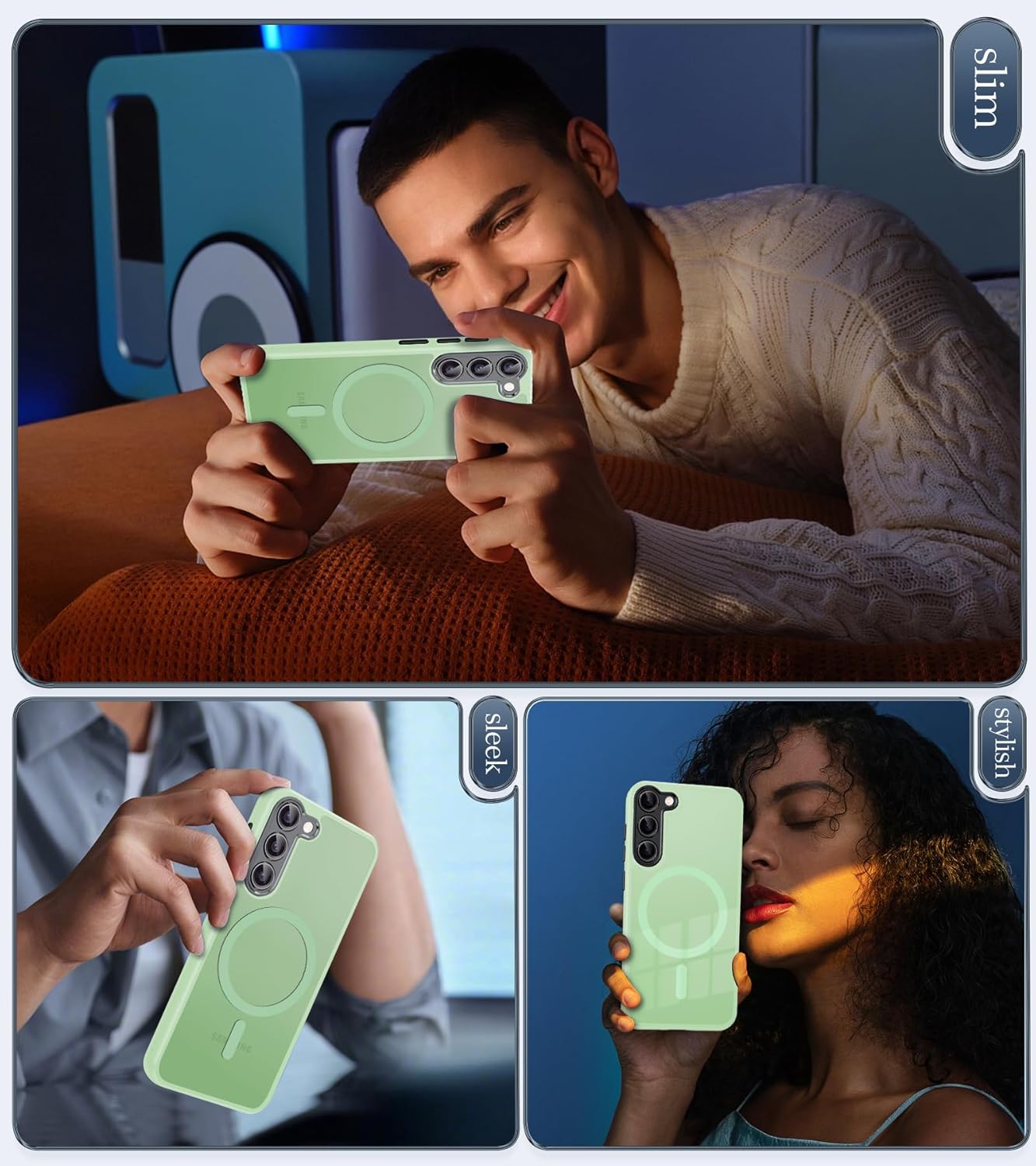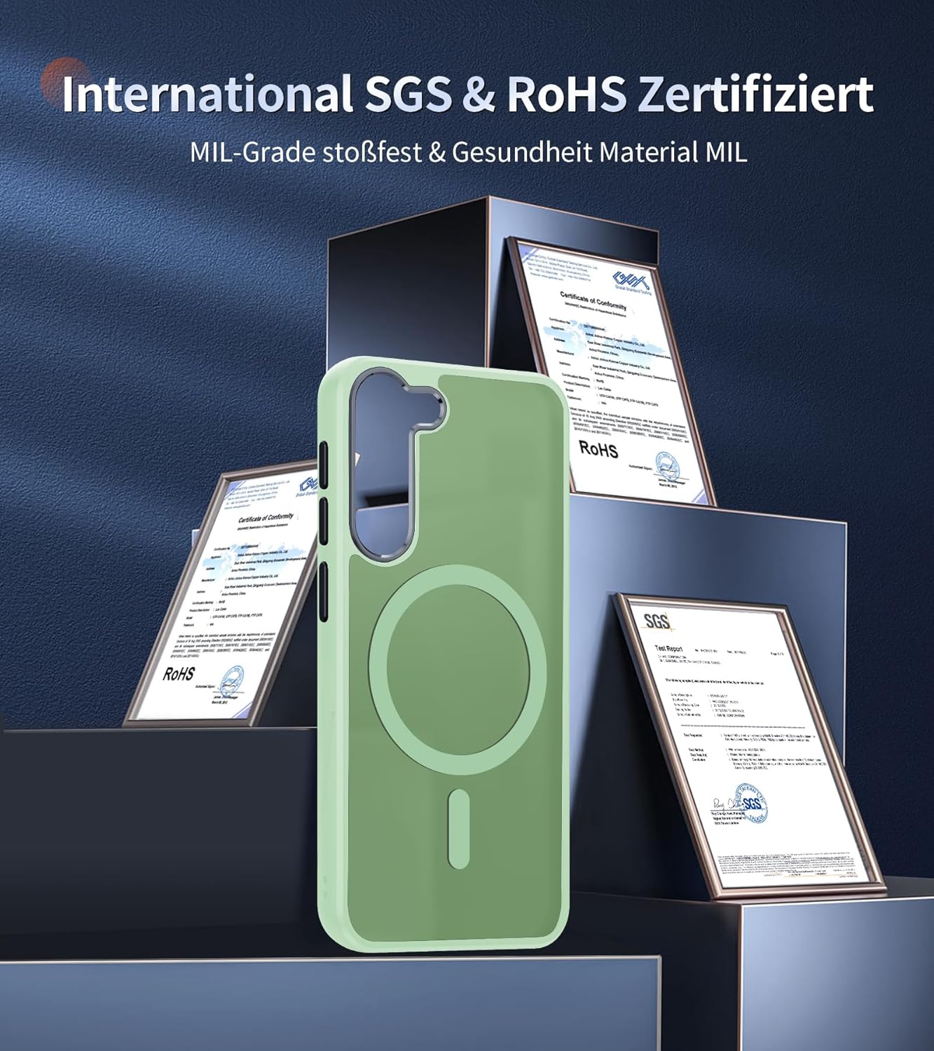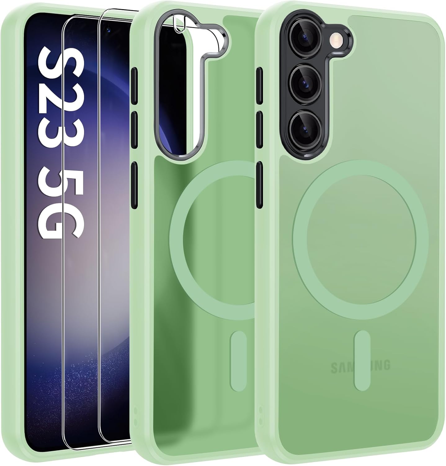 Магнитен калъф за мобилен телефон, съвместим със Samsung Galaxy S23, съвместим с MagSafe с 2 протектора за екран, пълна защита на камерата, удароустойчив, тънък, прозрачен матов защитен калъф