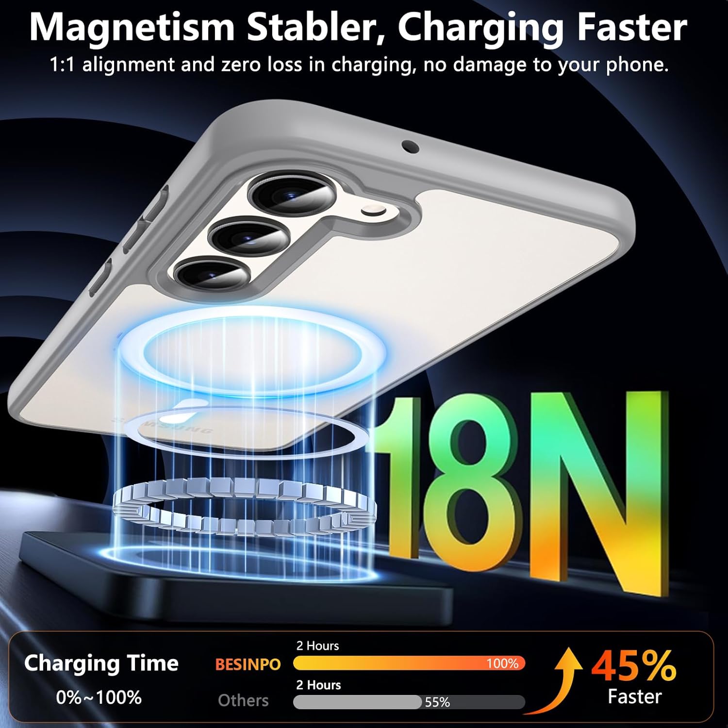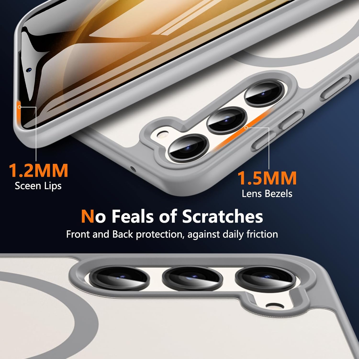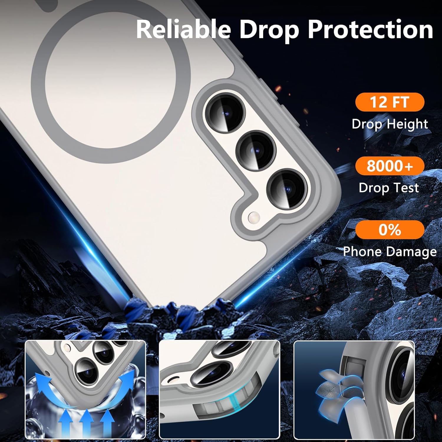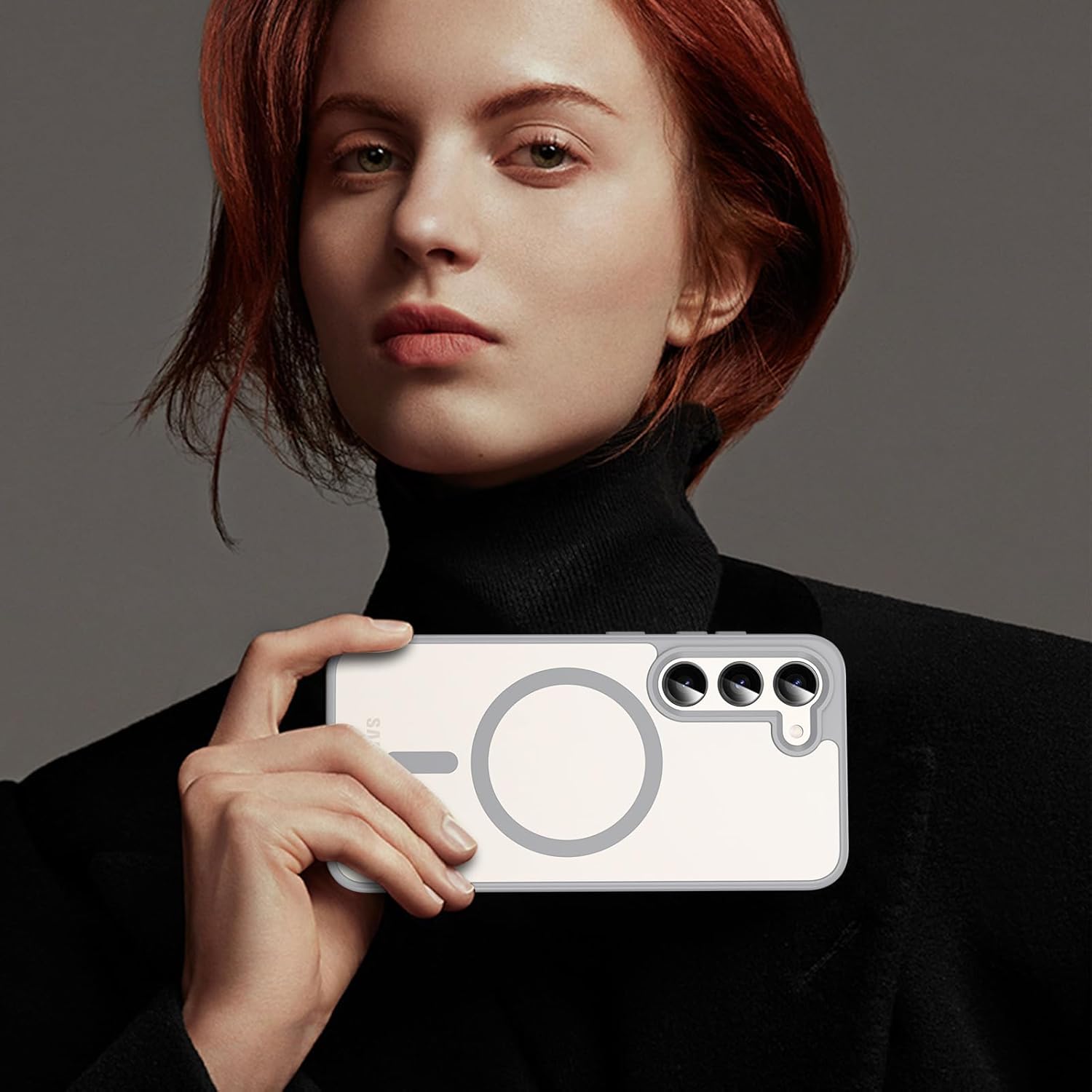 Магнитен калъф за Samsung Galaxy S23 със закалено стъкло, военна защита, калъф за мобилен телефон S23 с MagSafe матово полупрозрачно защитно фолио, защитен калъф за Samsung S23 (сив)
