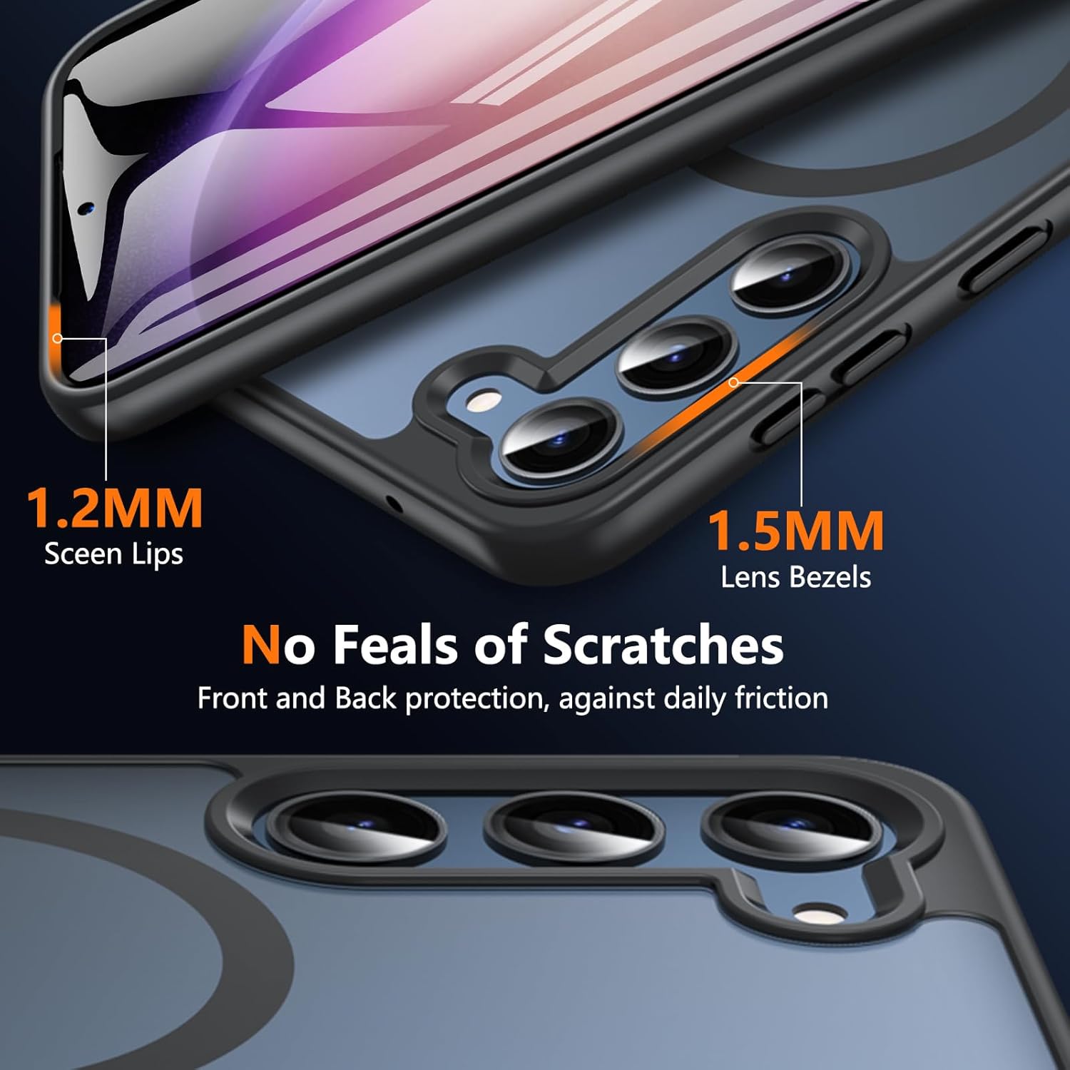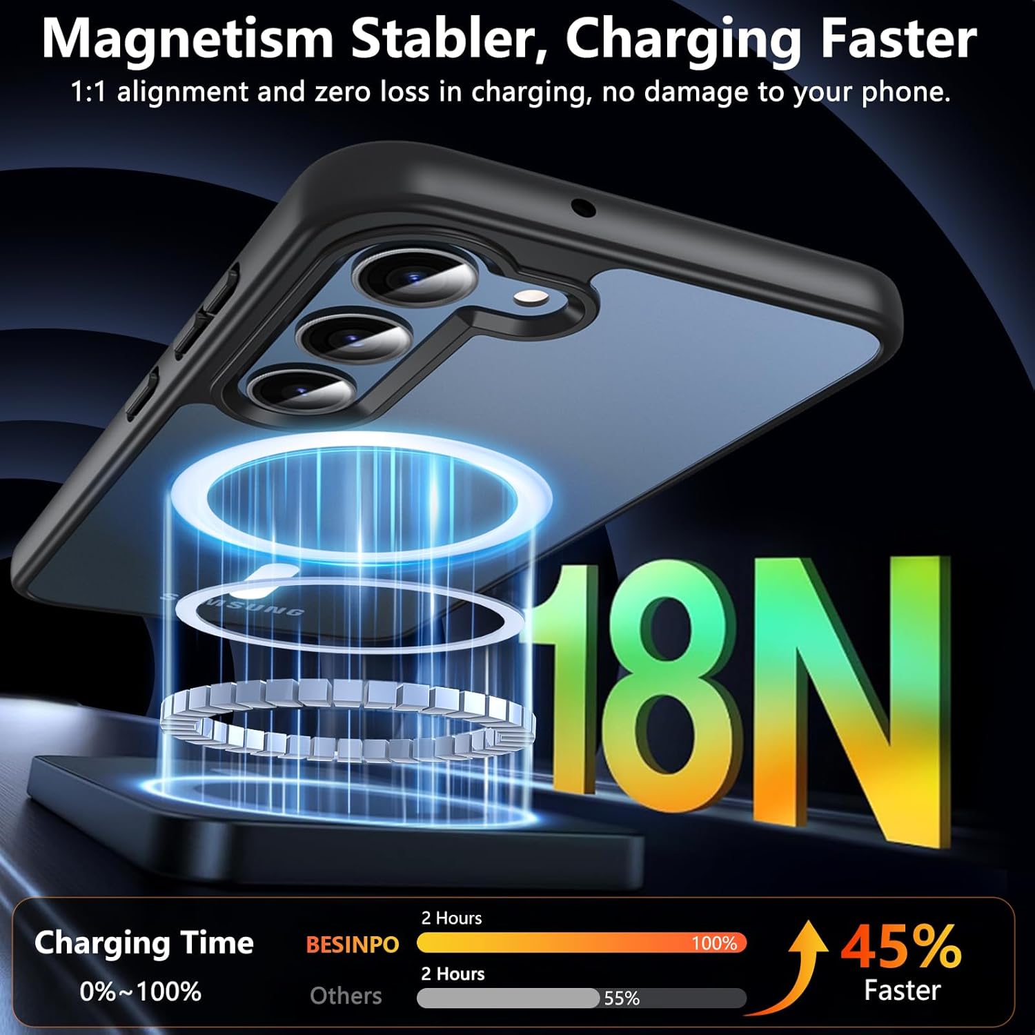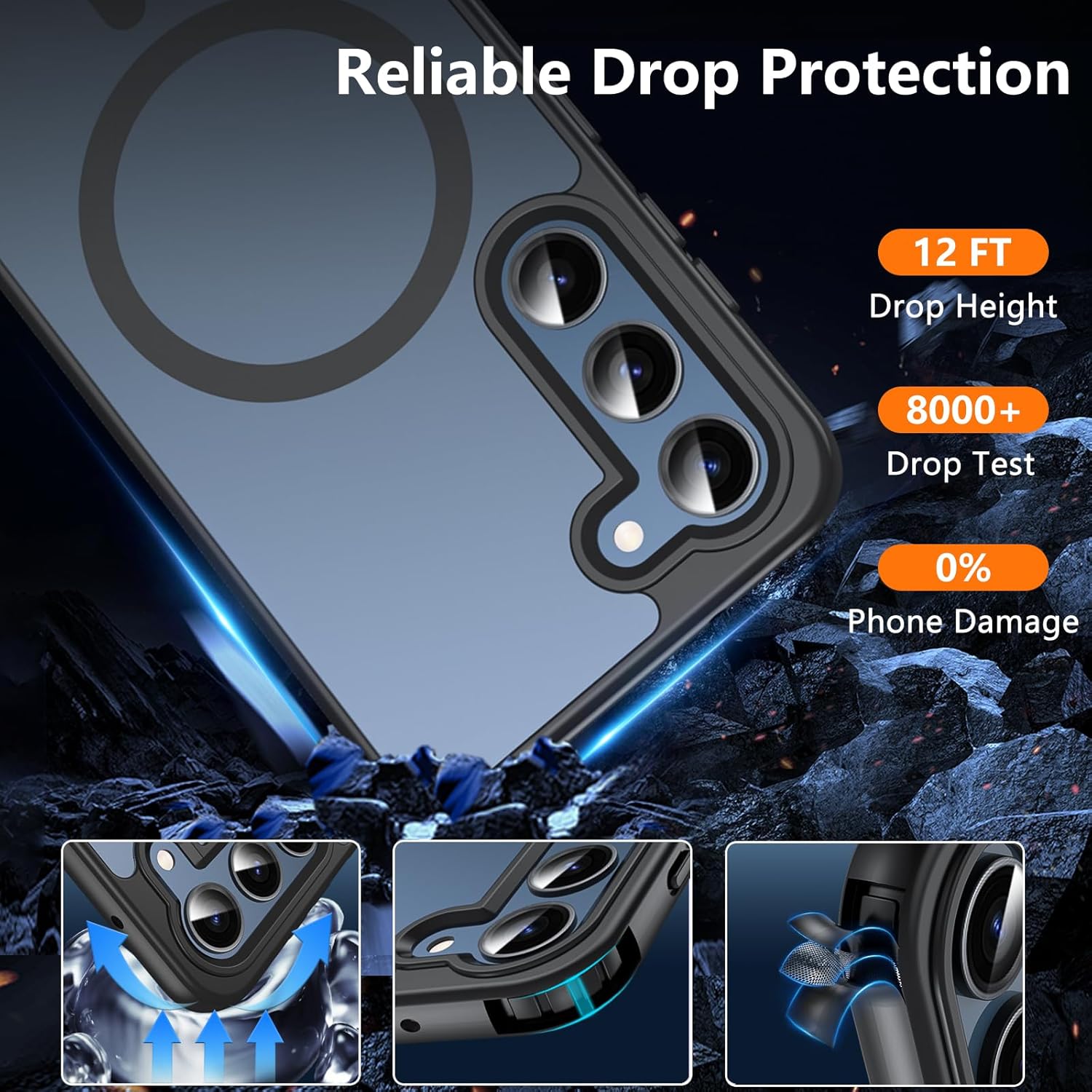 Магнитен калъф за Samsung Galaxy S23 със закалено стъкло, военна защита, калъф за мобилен телефон за Samsung S23 с MagSafe матово полупрозрачно защитно фолио, защитен калъф за Samsung S23