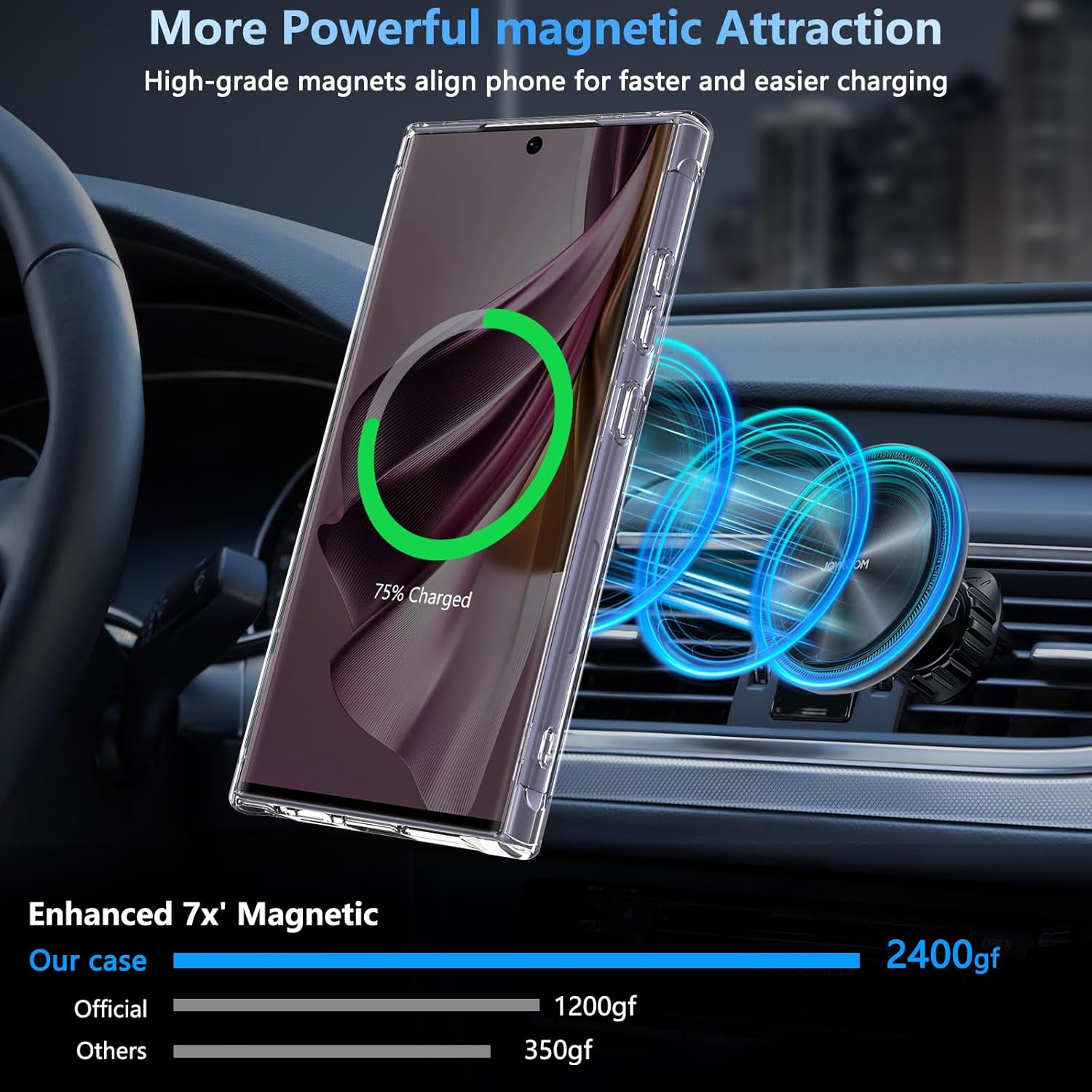 • Супер силна магнитна функция: Калъфът за S25 Ultra използва силни магнити с магнитна сила до 2200 гауса. Този магнитен калъф за мобилен телефон за Galaxy S25 Ultra е съвместим с държачи за кола, магнитна стойка и може да се закрепи към хладилника, за да направи живота ви по-комфортен.