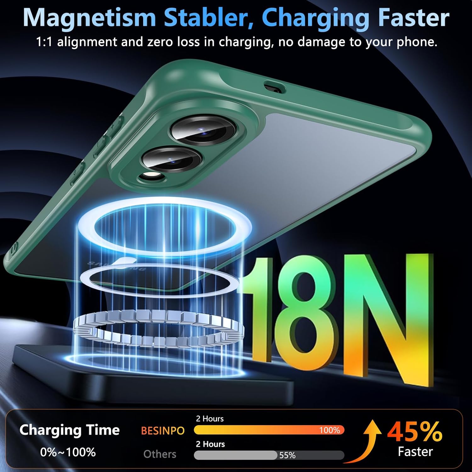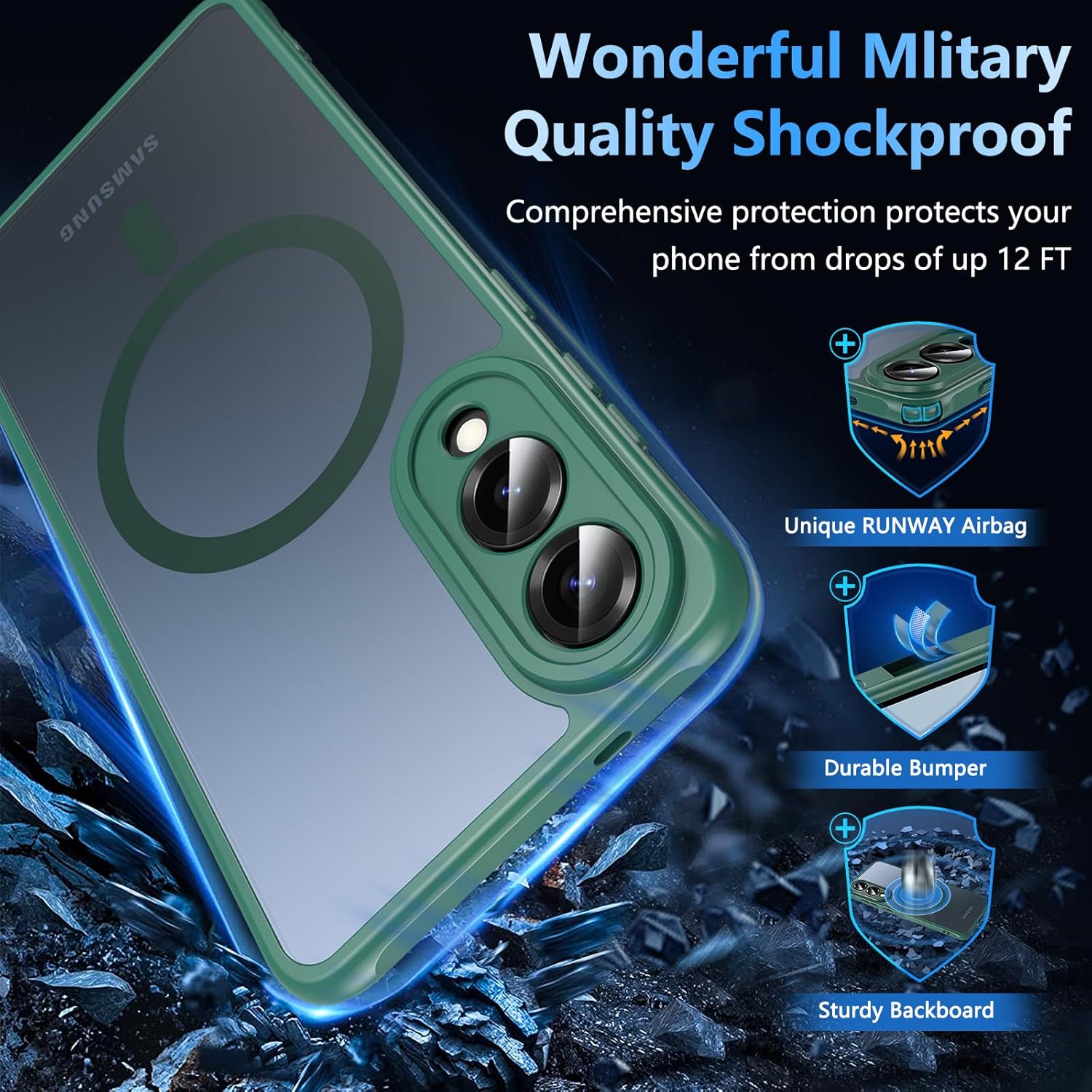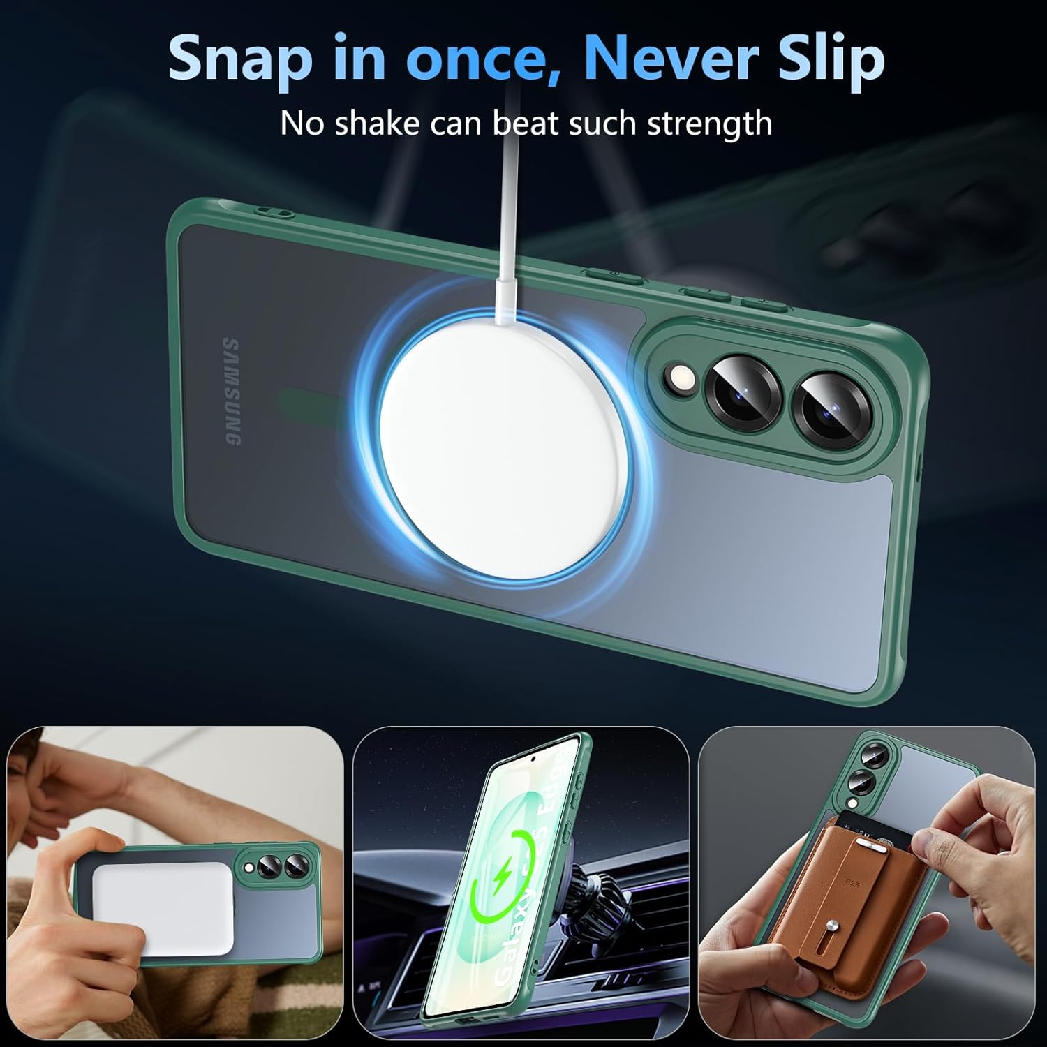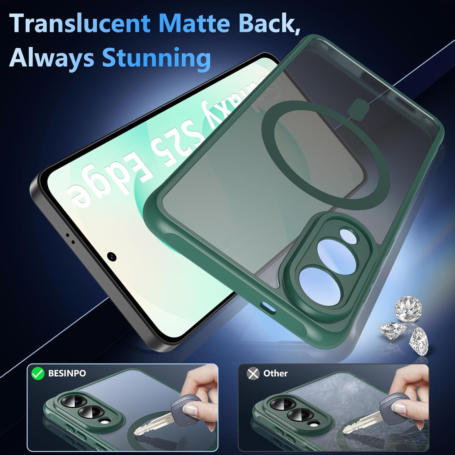 Магнитен калъф за Samsung Galaxy S25 Edge със закалено стъкло, военна защита, калъф за мобилен телефон за S25 Edge с MagSafe матово полупрозрачно защитно фолио, защитен калъф за Samsung S25