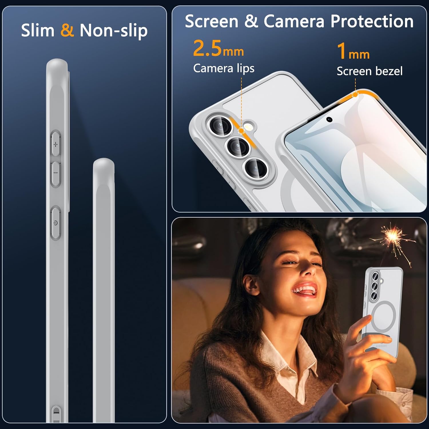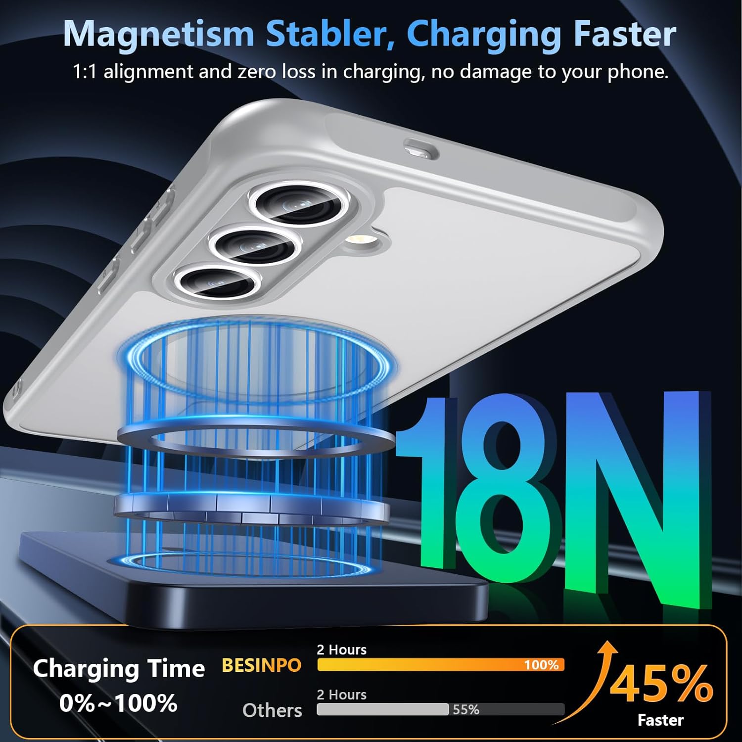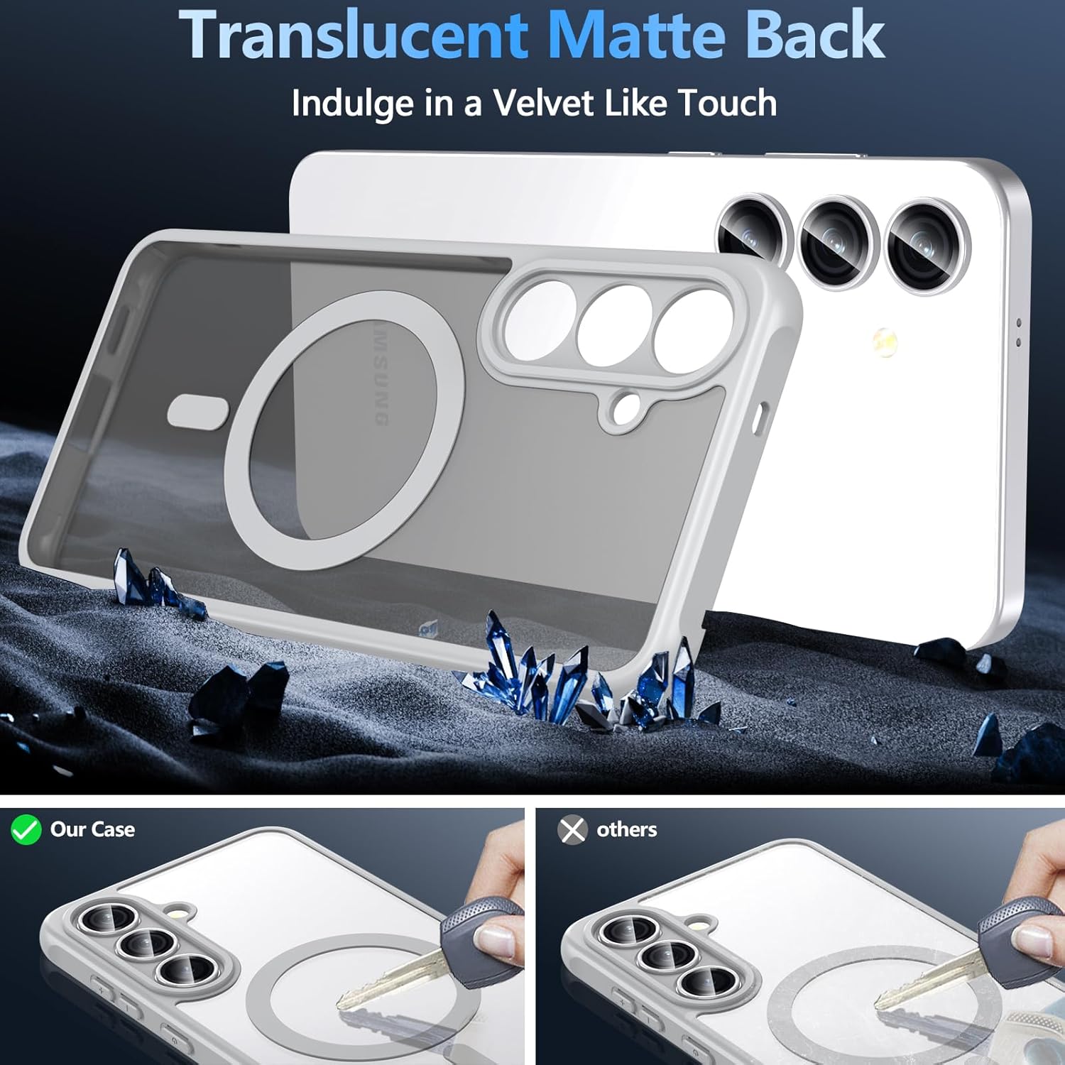 Магнитен калъф за Samsung Galaxy S25 FE със закалено стъкло, военна защита, калъф за мобилен телефон за S25 FE с MagSafe матово, полупрозрачно, здраво защитно фолио, защитен калъф за Samsung S25