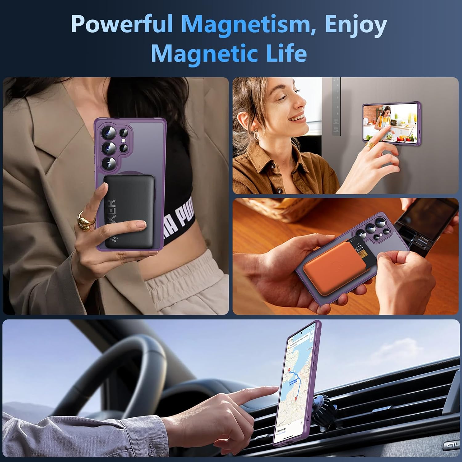 • Супер силна магнитна функция: Калъфът за S25 Ultra използва силни магнити с магнитна сила до 2200 гауса. Този магнитен калъф за мобилен телефон за Galaxy S25 Ultra е съвместим с държачи за кола, магнитна стойка и може да се закрепи към хладилника, за да направи живота ви по-комфортен.