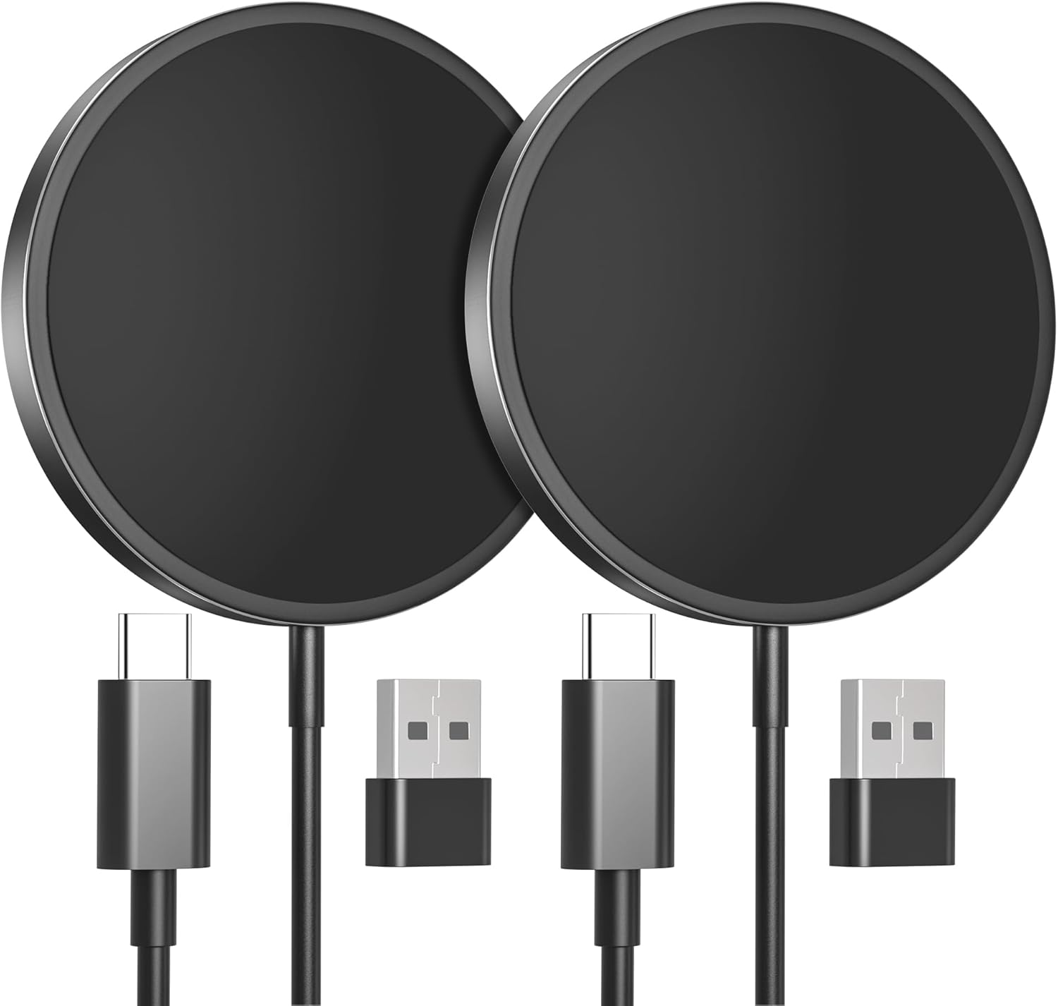 Магнитно безжично зарядно, MagEase 15W безжично зарядно Mag~Safe, съвместимо с iPhone 17/16/15/14/13/12 Series и AirPods 3/2/Pro, пакет от 2 (черно)