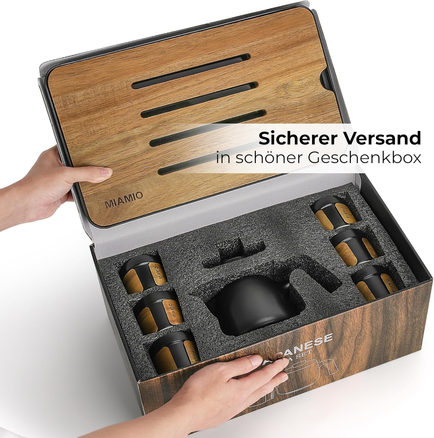 МАЙАМИО - Японски/Китайски комплект чай 6 x 100 мл / Азиатски чайник 620 мл с инфузер за чай, Традиционен японски комплект чайници за любители на чай/мъже/жени (черен)