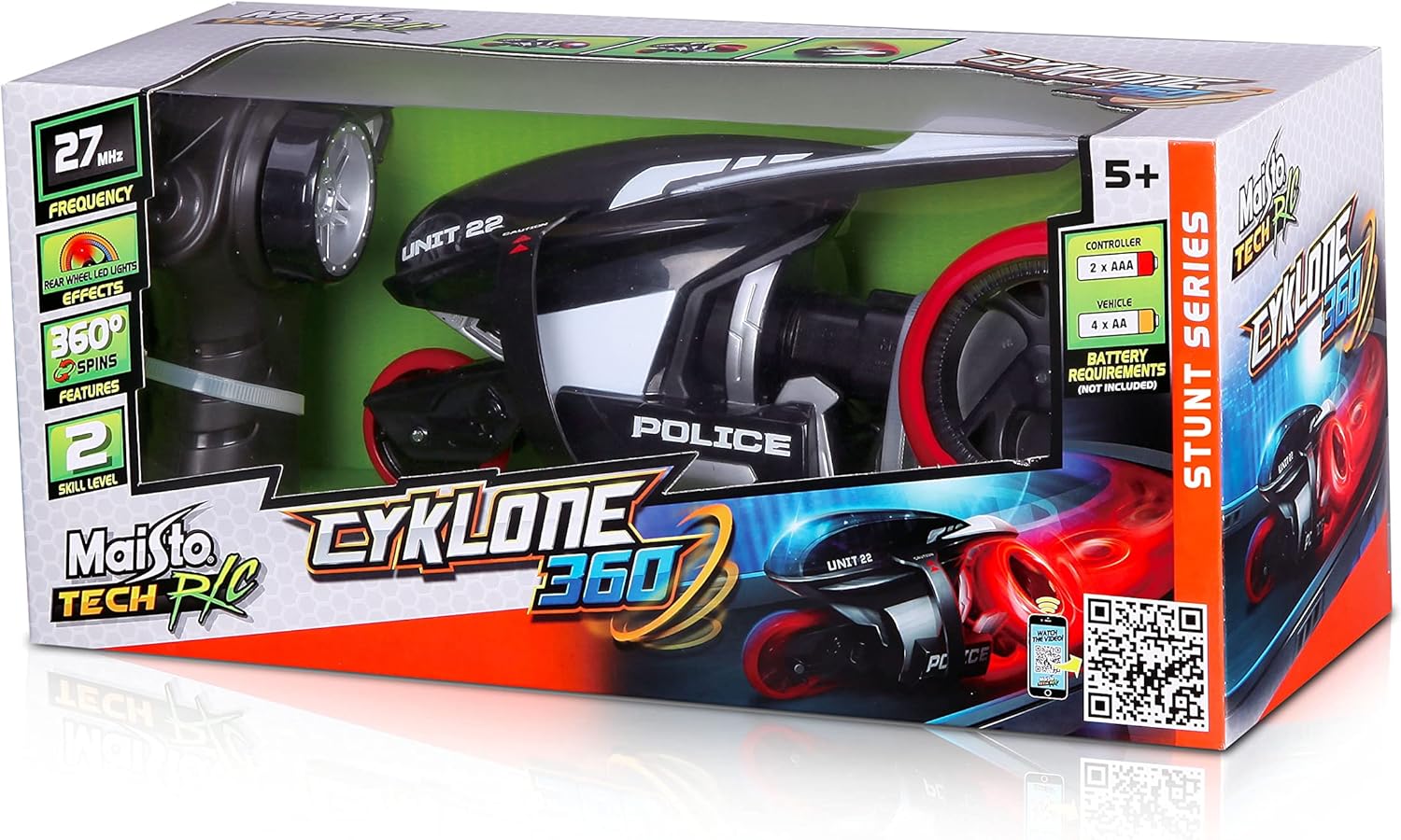 • Карай и се състезавай с приятелите си, за да направиш мотоциклета си най-бързият; карай, завъртай се и прави най-невероятните действия с RC мотоциклета от Maisto Tech; 2.4GHz предавател
