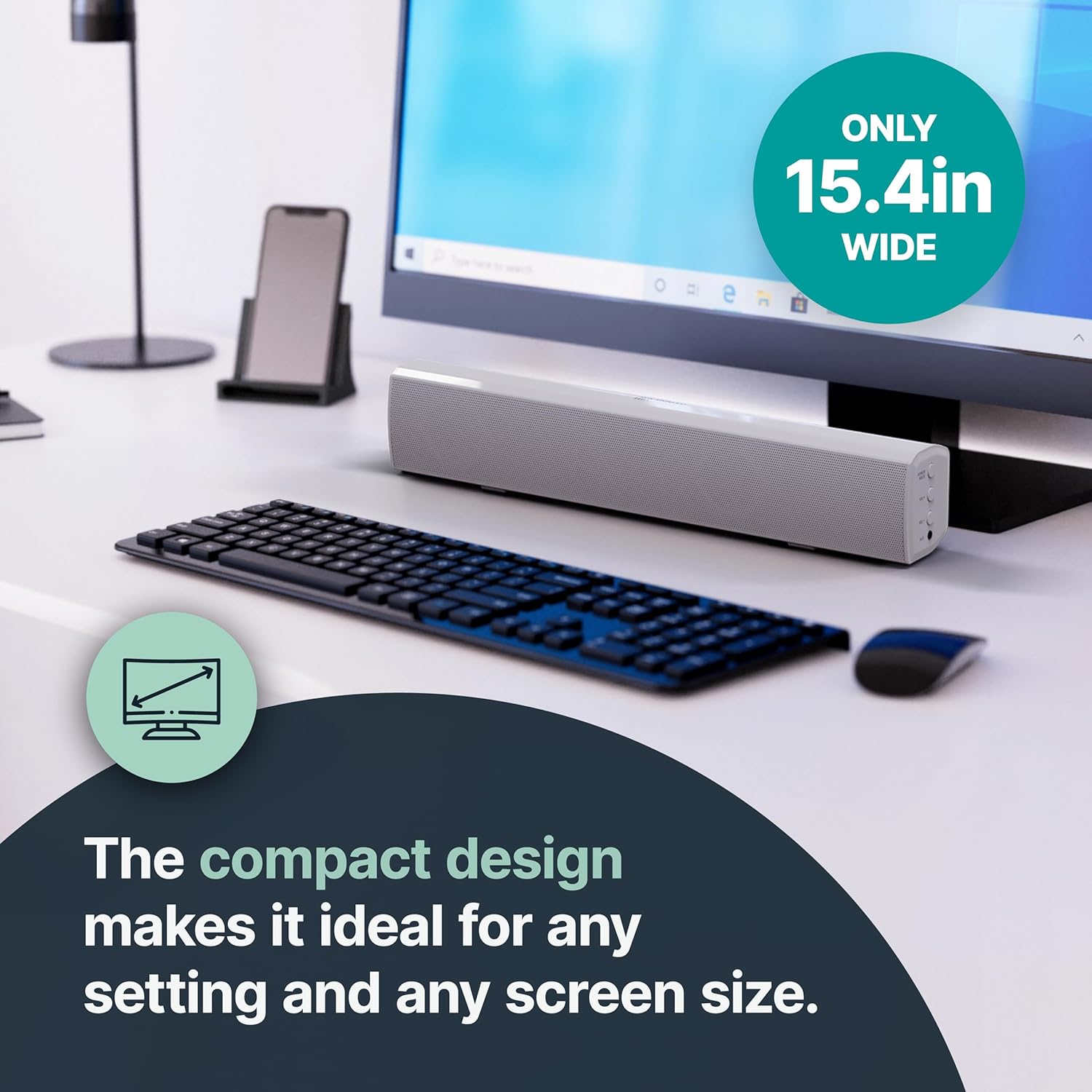 MAJORITY Bowfell саундбар за телевизор, Bluetooth високоговорител за компютър, 50 W 2.0 стерео, 39 см мини саундбар, дистанционно управление (бял)
