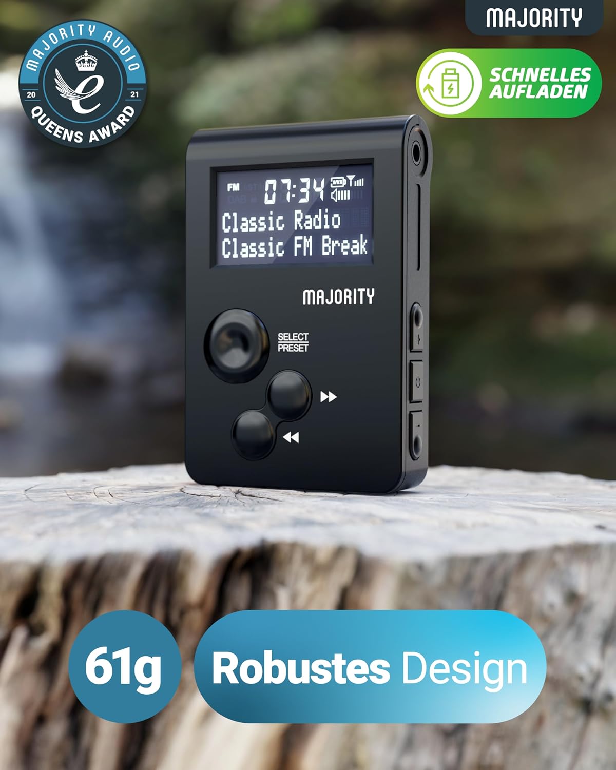 Слушайте цифрово радио в движение и закопчайте дрехите си по време на спорт или ходене/бягане/каране на колело с катарамата. Освен това се побира идеално в джоба ви.