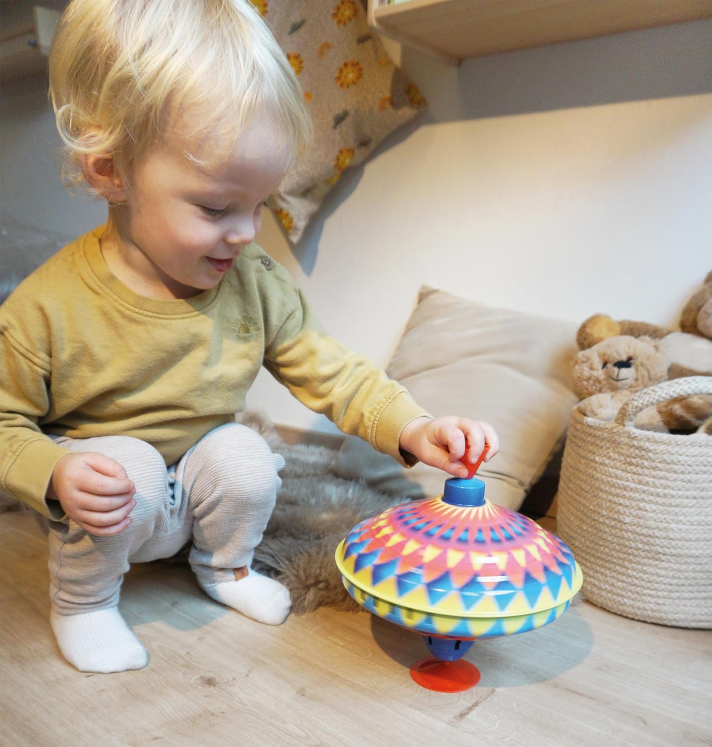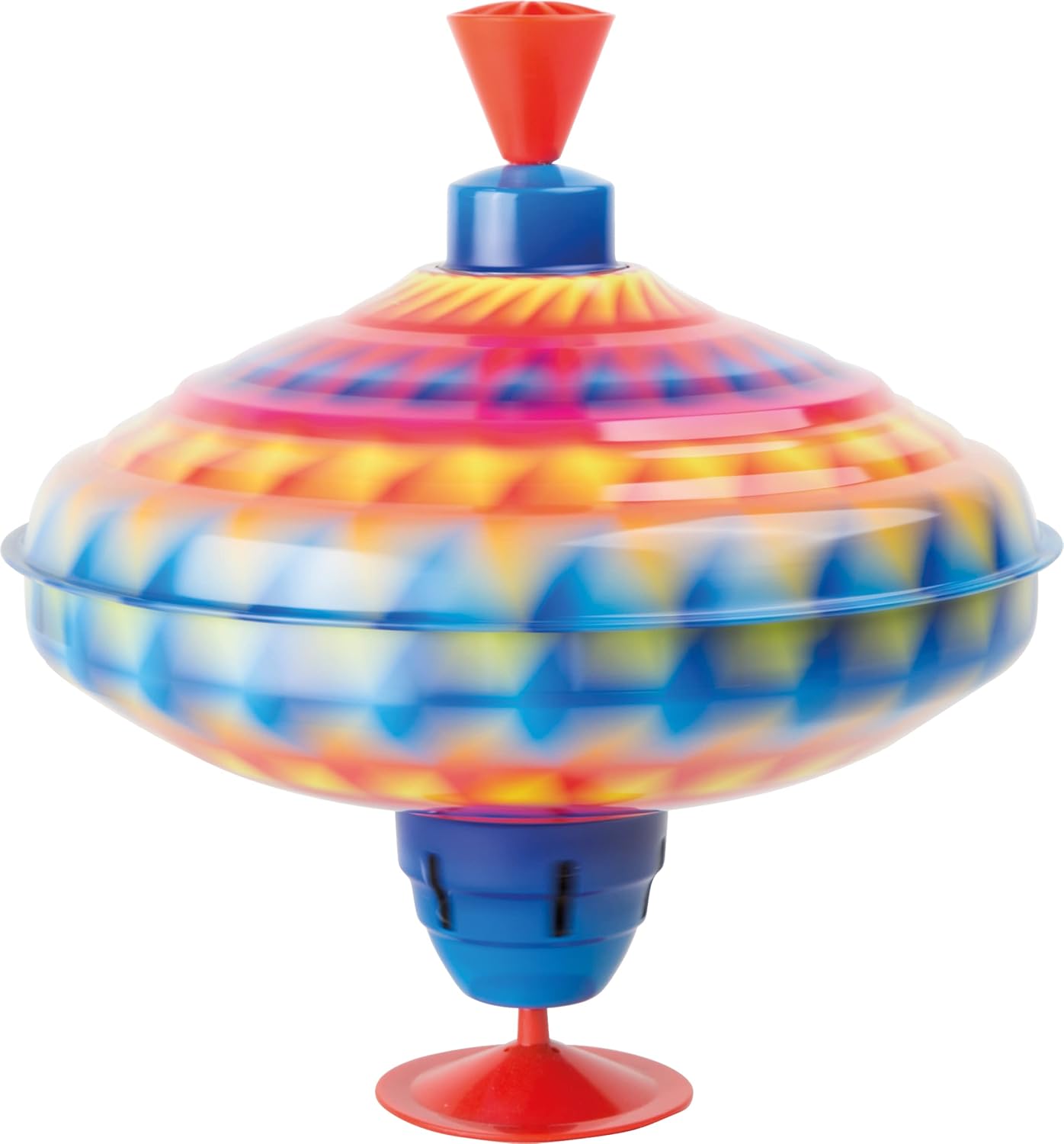 Кой не познава бръмчащото пумпал? Прекрасна, цветна метална играчка, която започва да се върти и бръмчи, когато натиснете дръжката. Гумената основа я държи на място. Страхотна играчка за деца! Височина: приблизително 23 см, диаметър: приблизително 22 см