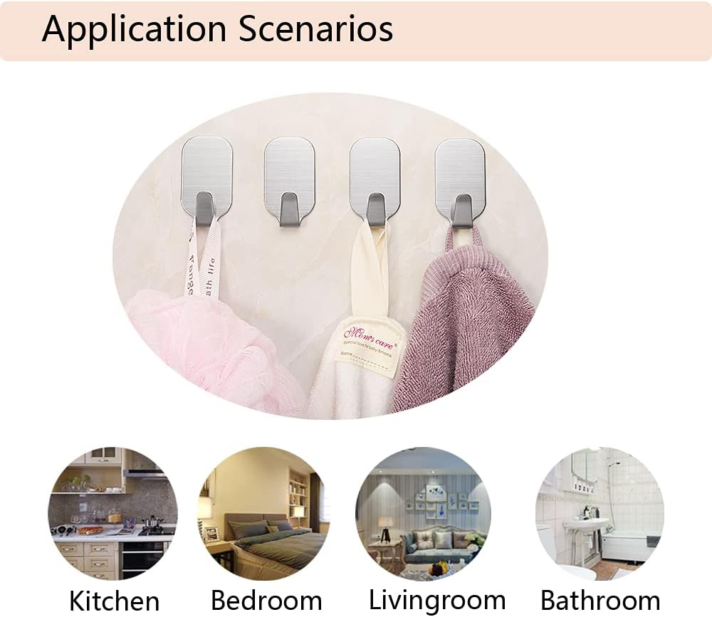 3. Тези висококачествени самозалепващи куки от неръждаема стомана имат голяма товароносимост и са идеални за организиране на дома.