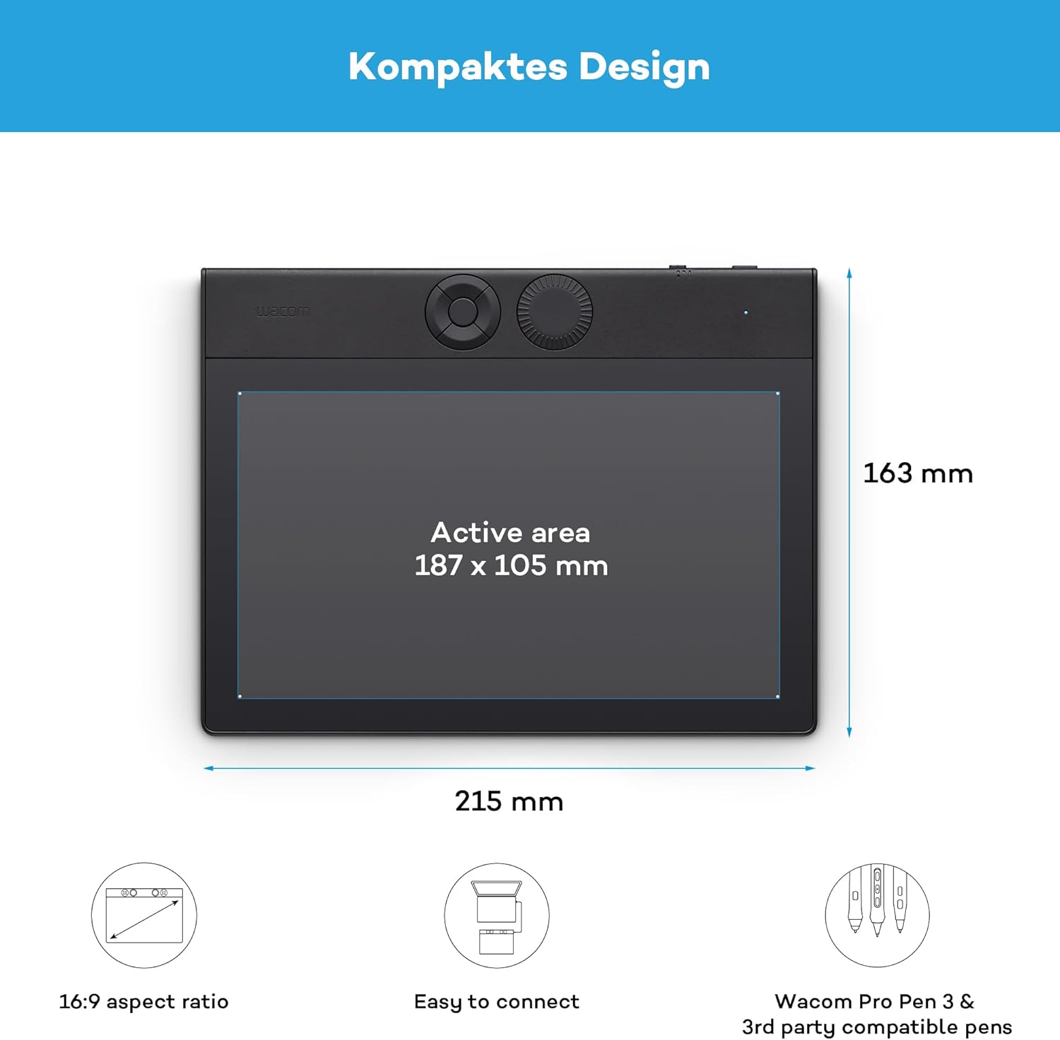 • Ергономичното разположение на новите ExpressKeys и механичните циферблати е подходящо както за десничари, така и за левичари. Конфигурируемите бутони на писалката, заедно с лесната кабелна USB и Bluetooth свързаност с многократно сдвояване, оптимизират дори сложни работни процеси. С живот на батерията до 16 часа, можете да поддържате творческия си поток по-дълго, без прекъсвания.