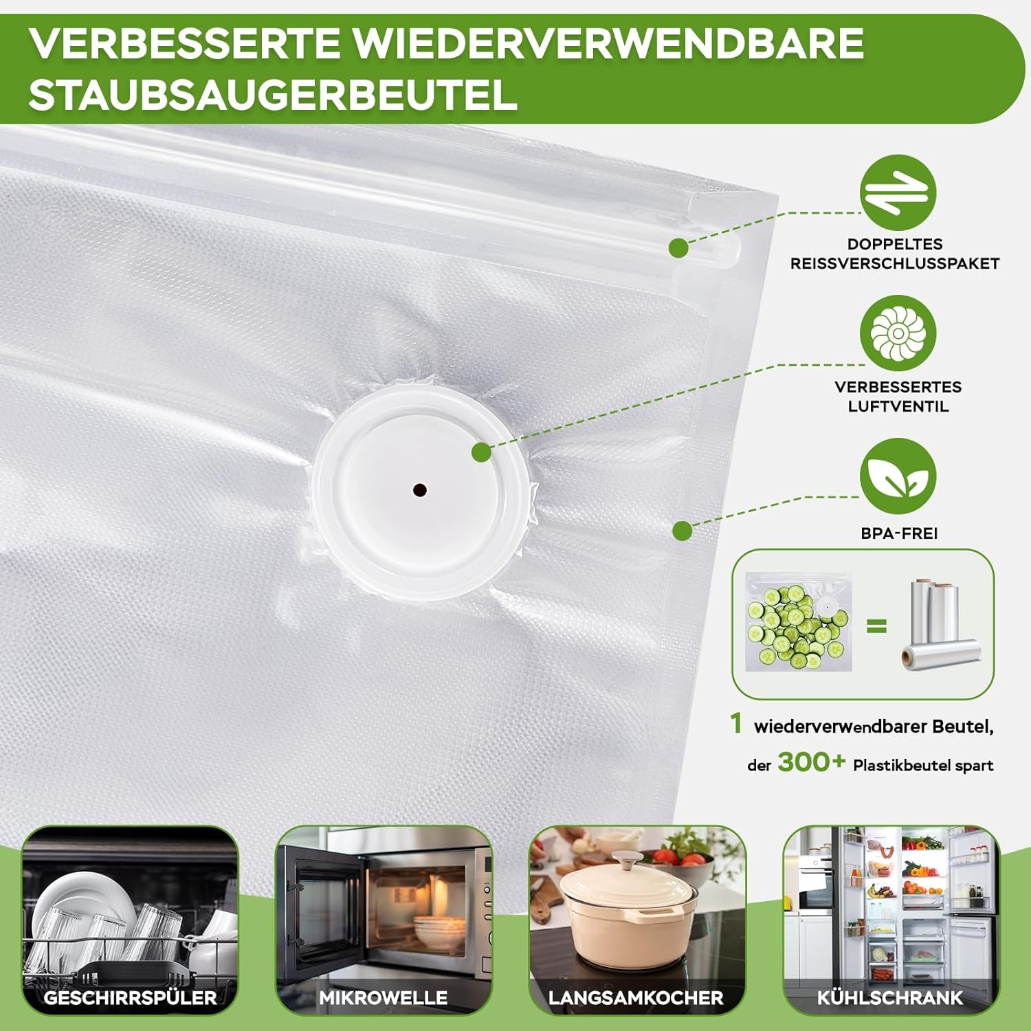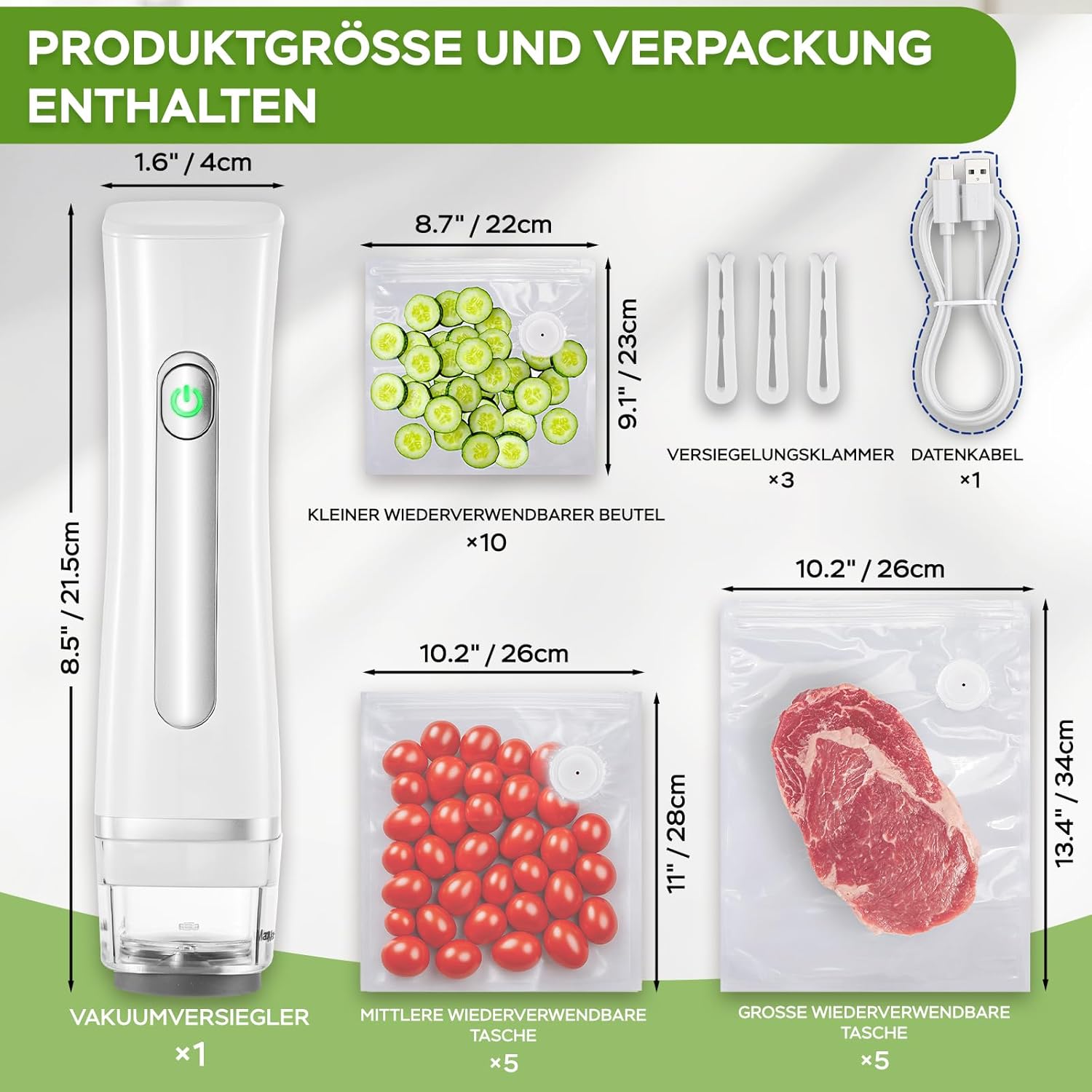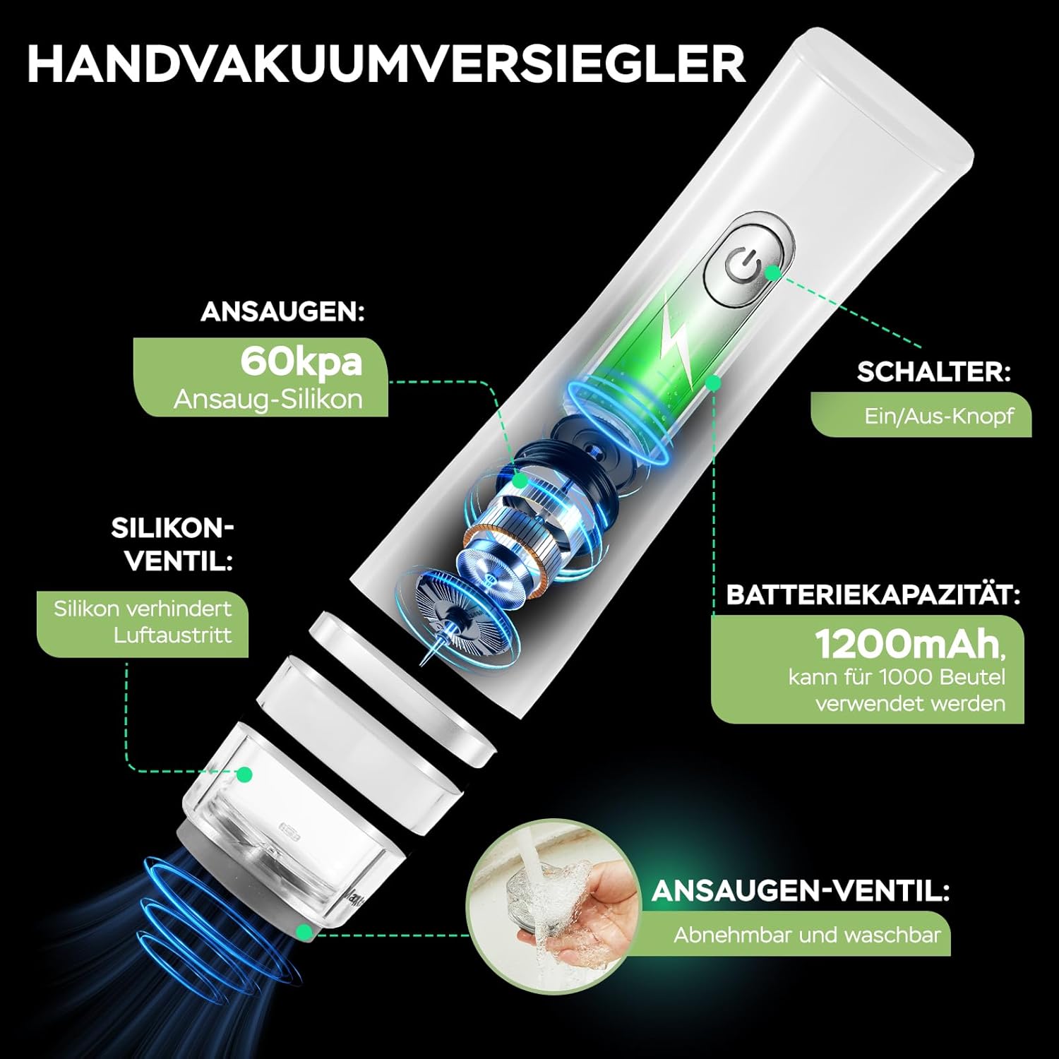 Със силна всмукателна мощност от 60 kPa, може да се вакуумира за 5 до 10 секунди, като по този начин се удължава срокът на годност на храната.