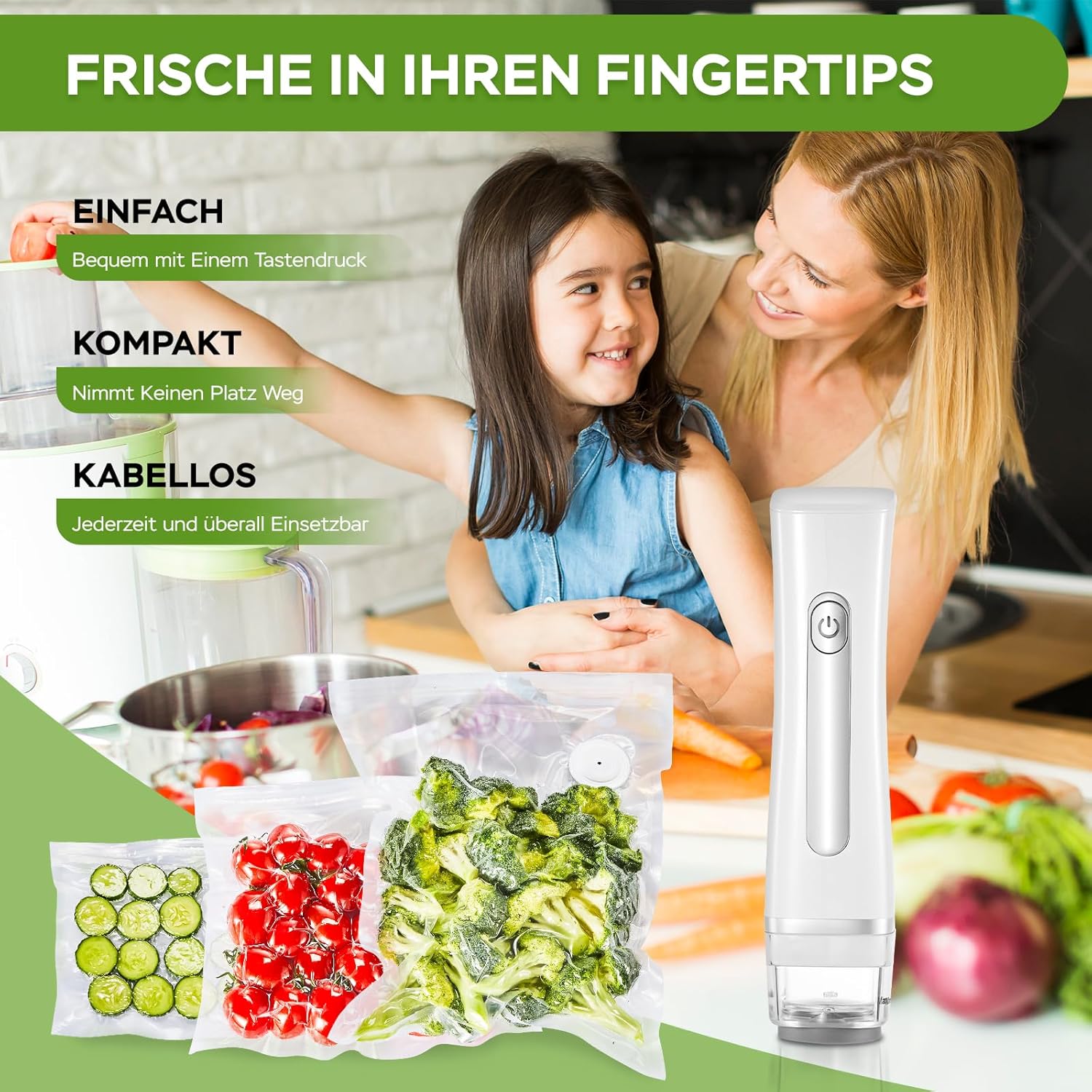 Този удобен вакуумен уред стартира с натискане на бутон и спира автоматично, след като процесът на запечатване приключи.