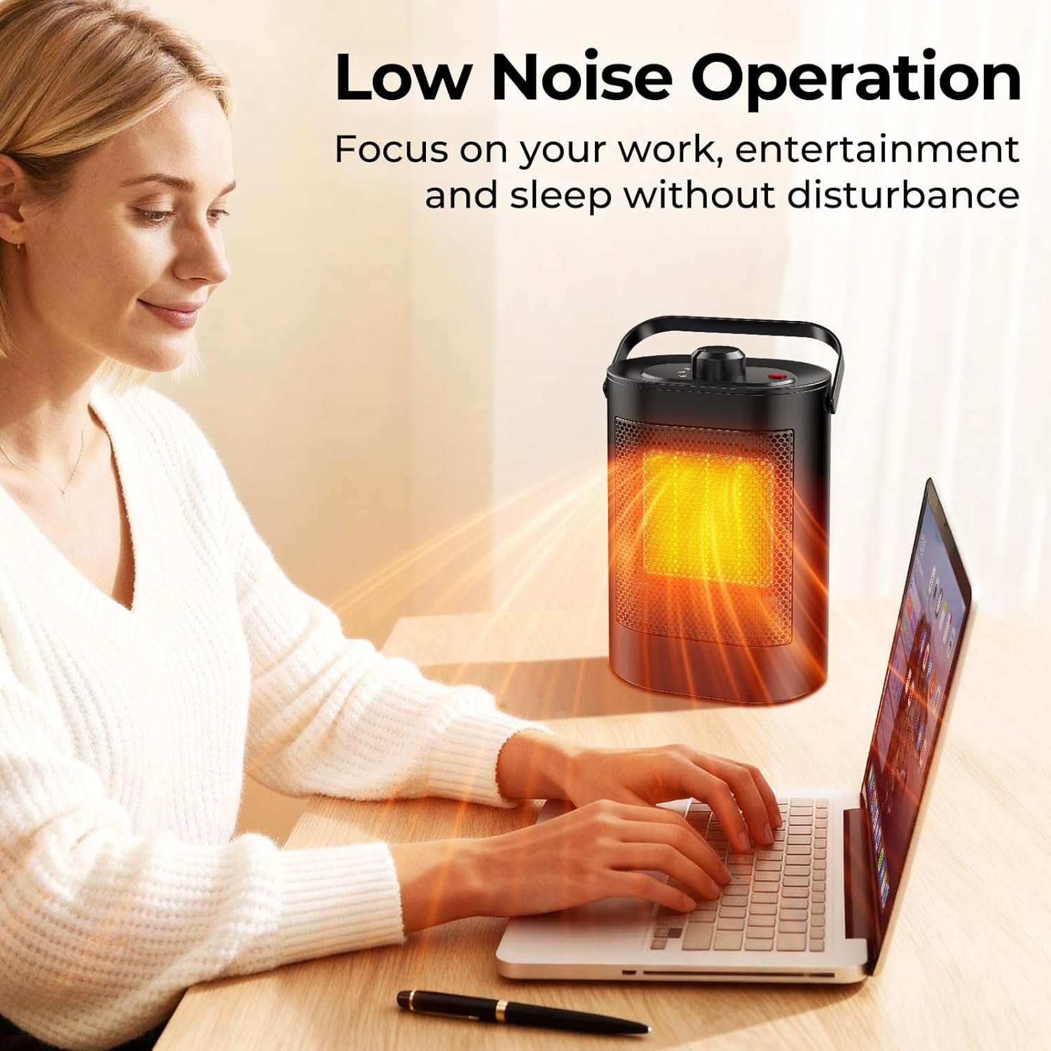 • 【Защита от прегряване и падане】Безопасността е на първо място: Вентилаторният нагревател е оборудван с вградена защита от прегряване, която автоматично изключва устройството, когато температурата е твърде висока. Освен това, защитата от падане гарантира безопасност - ако устройството случайно падне, то се изключва незабавно, за да се предотврати опасност от пожар. Идеален за домове с деца или домашни любимци.