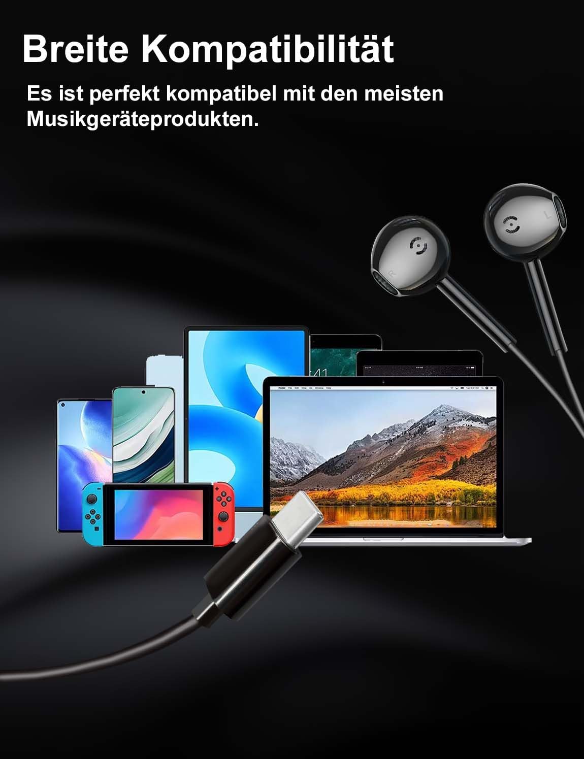 • 2. Универсална съвместимост Тези USB-C слушалки са съвместими не само с iPhone 15, 16 и iPad, но също така работят перфектно със Samsung Galaxy S25, S24, A53, Google Pixel, Xiaomi Redmi, Huawei Honor, OPPO, Vivo и други. Само с един Type-C интерфейс можете лесно да ги свържете.