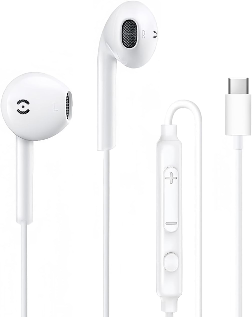 • 2. Универсална съвместимост Тези USB-C слушалки са съвместими не само с iPhone 15, 16 и iPad, но също така работят перфектно със Samsung Galaxy S25, S24, A53, Google Pixel, Xiaomi Redmi, Huawei Honor, OPPO, Vivo и други. Само с един Type-C интерфейс можете лесно да ги свържете.