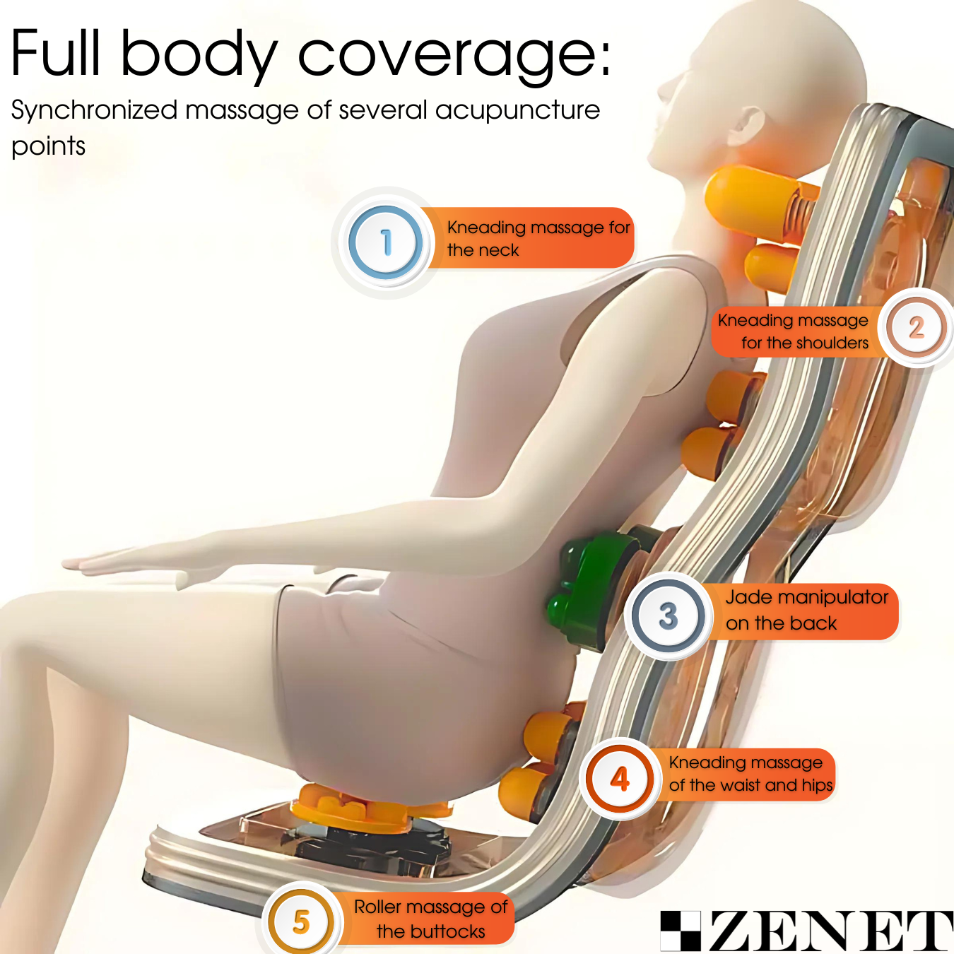Професионален масажен стол: ZENET 1288 не само предлага стандартни масажни техники, но също така включва различни специализирани програми, предназначени да облекчат болката в гърба, раменете и кръста.
