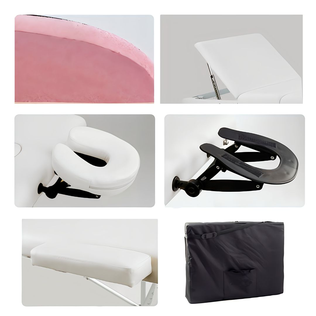 Облегалката за глава и подлакътниците са регулируеми, заедно с височината на кушетката, което позволява на потребителя да лежи удобно, а масажистът да избере желаната работна височина. Кушетката е преносима, като за целта е включена и чанта за носене за лесно транспортиране и съхранение.