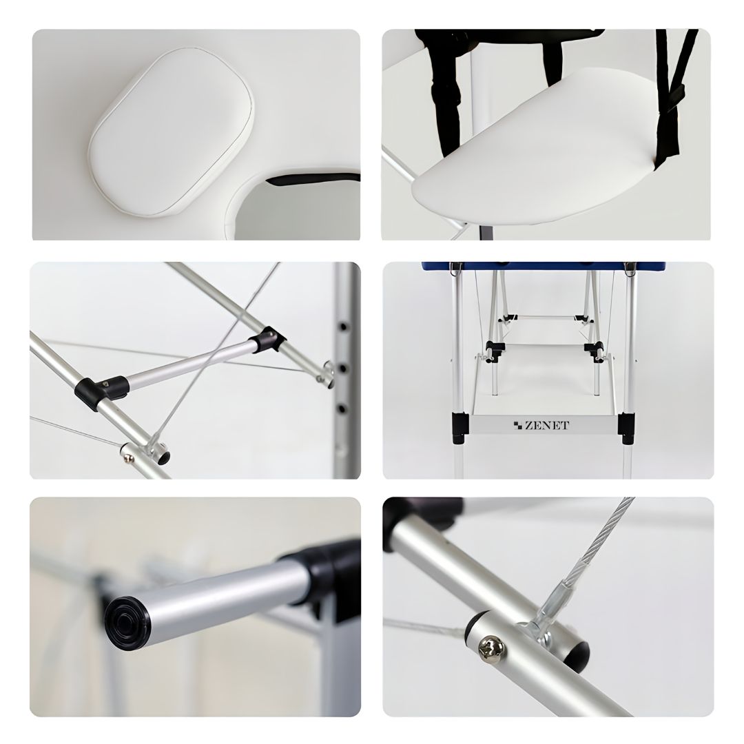 Тази състояща се от 2 зони сгъваема масажна кушетка с алуминиева рамка Zenet ZET-1044 размер L бяла е подходяща както за любители, така и за професионалисти.