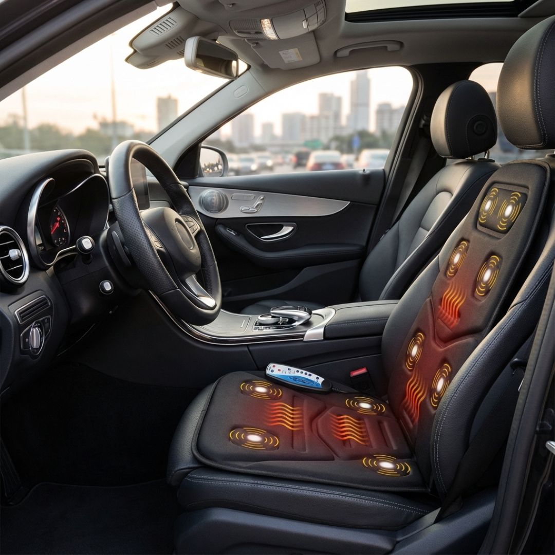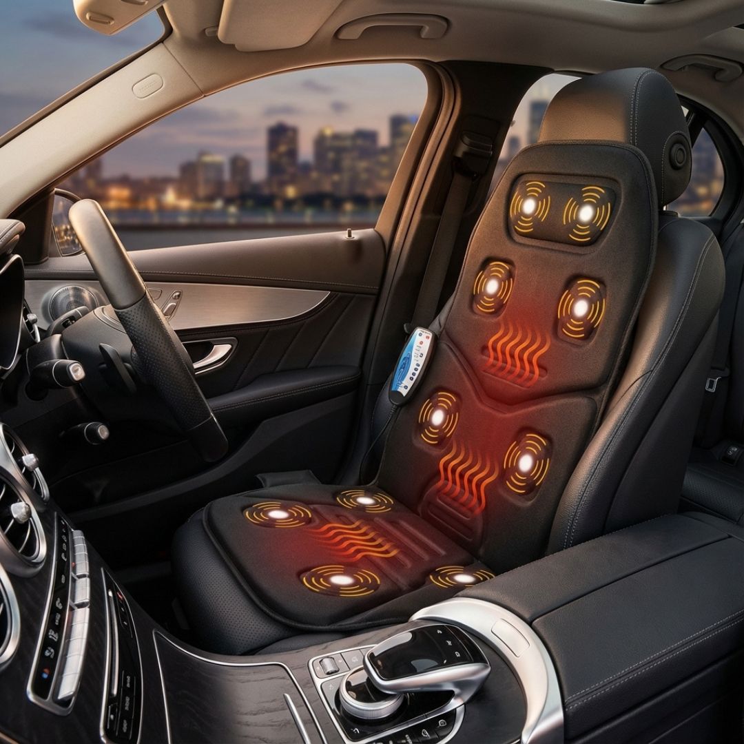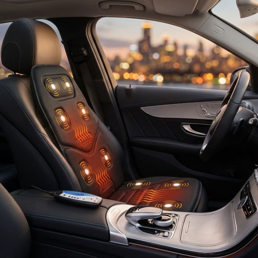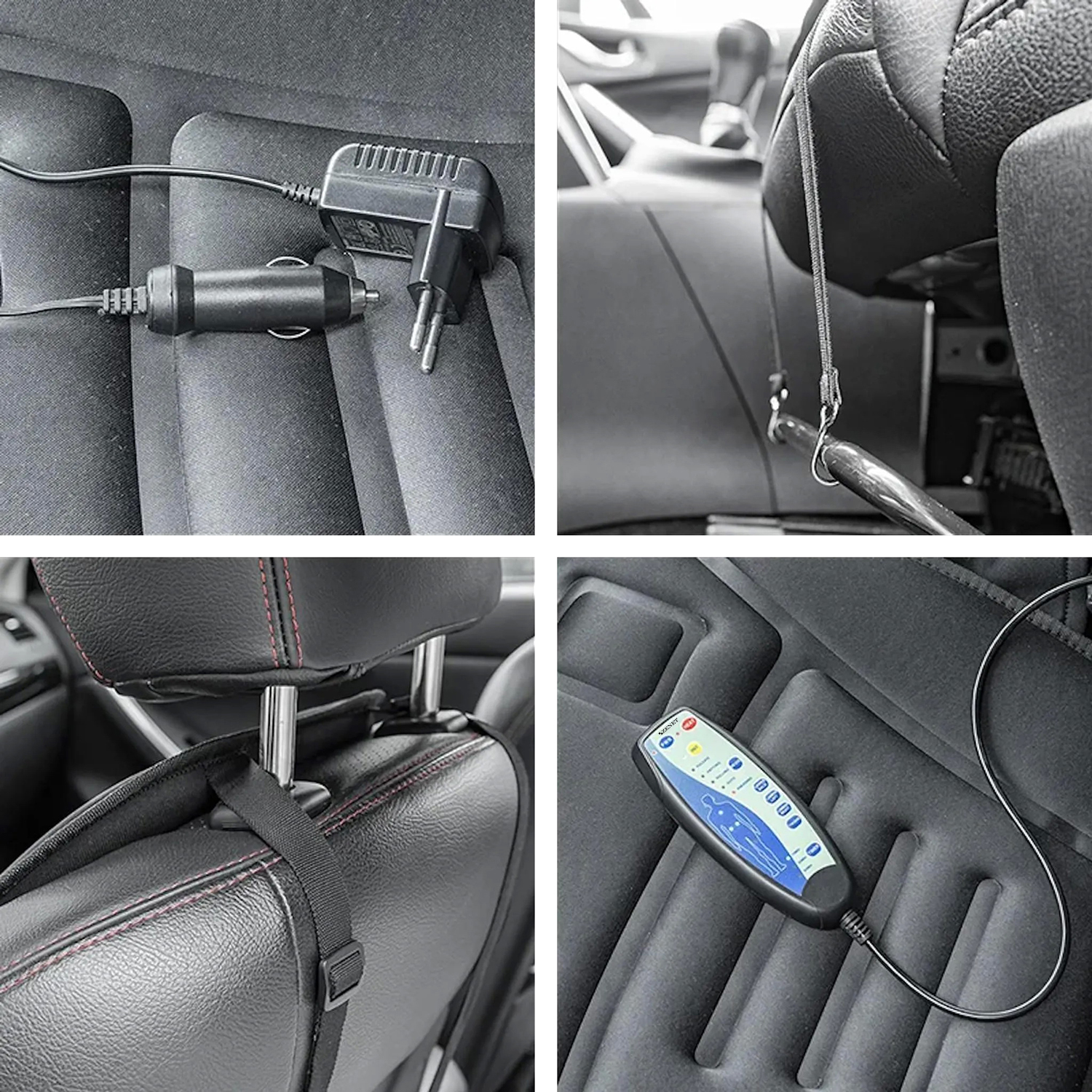 може да се използва у дома като "масажен стол" или в кола като "масажна седалка" - има адаптер за захранване и 12V адаптер за автомобил;