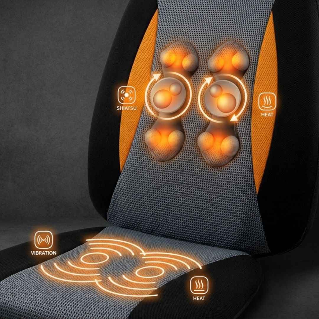 Шиацу масажор за гръб, кръст, таз - моментално облекчение на болки в кръста, по целия гръбнак и плешката, вибромасаж на седалище!