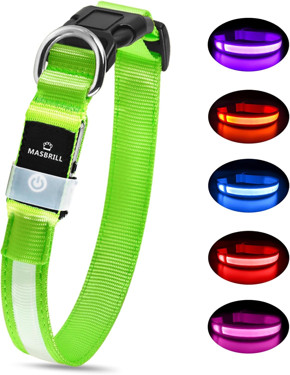 MASBRILL Светещ нашийник за кучета Светещ презареждащ се USB-C, LED нашийник за кучета Регулируем водоустойчив нашийник за кучета Светещ нашийник с 3 режима на осветление за малки, средни, големи кучета (черен M)