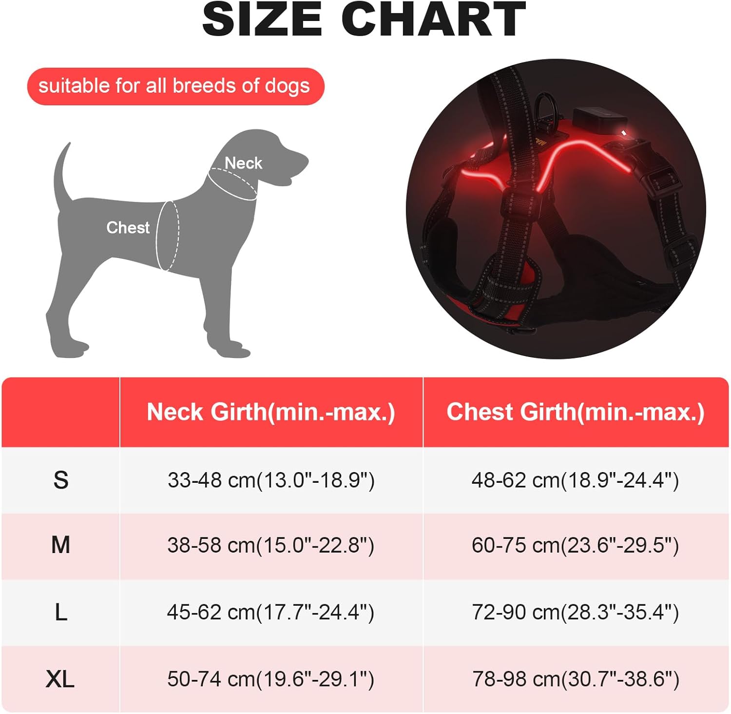 За да регулирате и нагласите правилно нагръдника за кучета MASBRILL LED, първо разхлабете бързоосвобождаващите се катарами. Поставете нагръдника на кучето си и се уверете, че има място за около два пръста между нагръдника и тялото на кучето. Регулирайте колана за врата и гърдите с 4-те лесно регулируеми каишки, като се уверите, че нагръдникът е плътно прилепнал, но не е прекалено стегнат. Прикрепете каишката или към предната щипка, за да предотвратите дърпане, или към задната щипка за спокойни разходки. Уверете се, че металните D-образни пръстени са правилно закрепени, за да разпределят равномерно опънното налягане и да предотвратят задавяне.