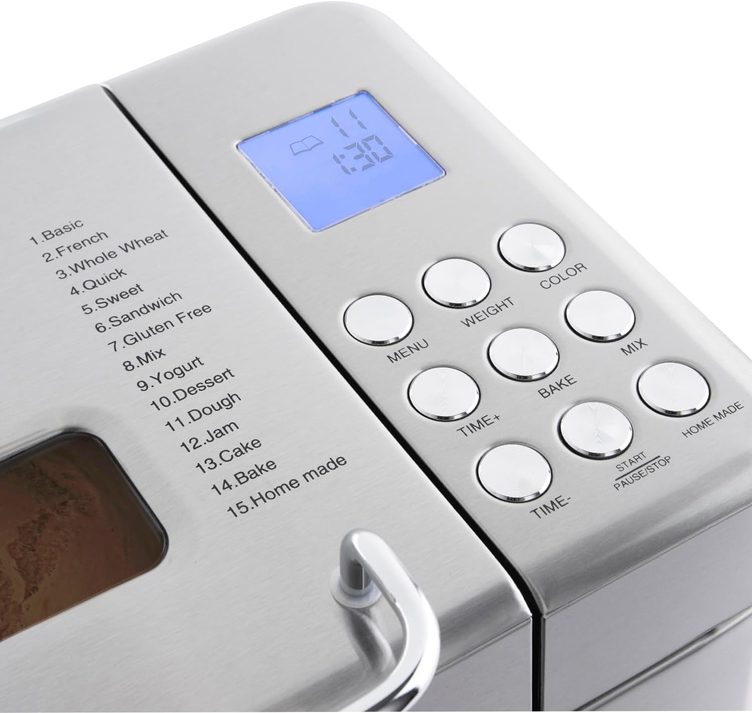 Неговите 15 програми ви позволяват да разнообразявате вкусотиите си: класически хляб, пълнозърнест хляб, хляб без глутен, бриош, бърз хляб, кисело мляко, конфитюр и много други.