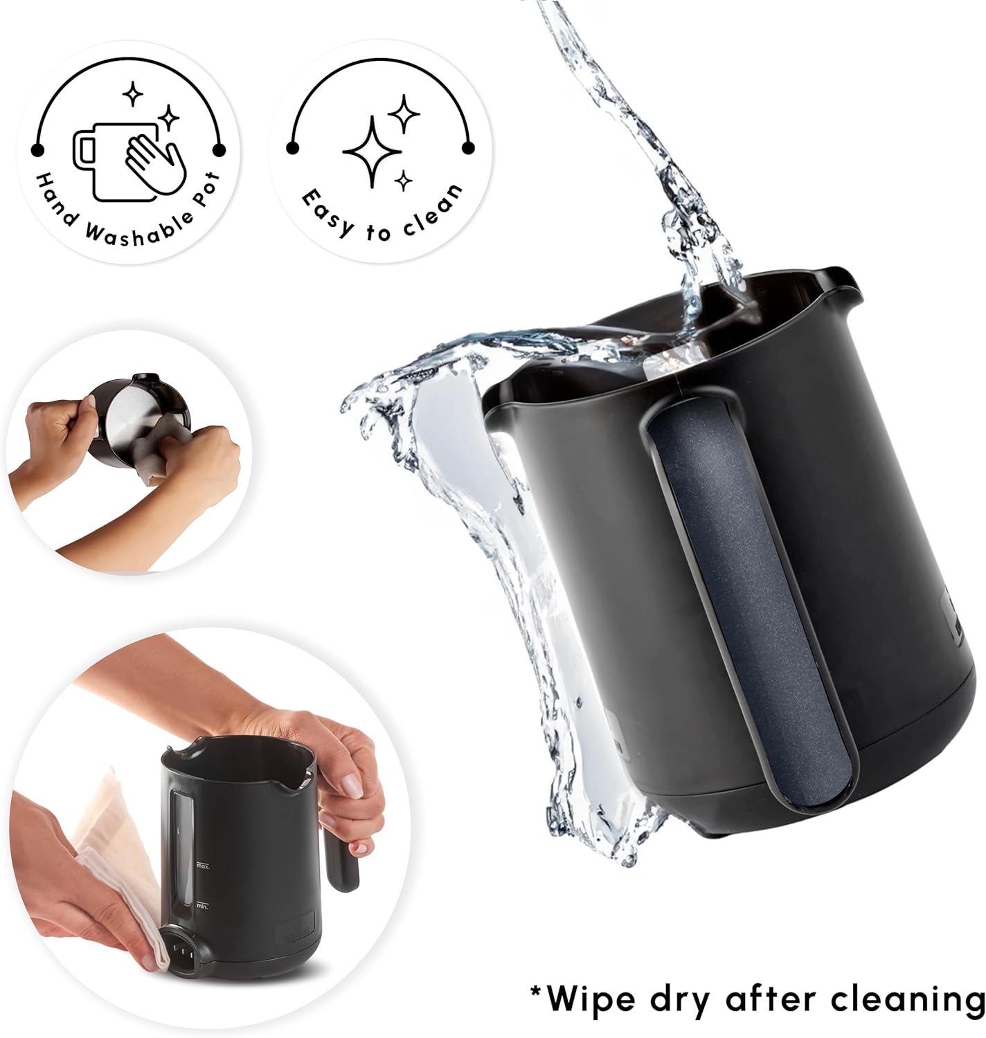 • ПРЕЦИЗНО И ЛЕСНО ПРИГОТВЯНЕ - Включената специална мерителна лъжичка опростява приготвянето на кафе и гарантира, че добавяте точното количество кафе за постоянно ароматно изживяване. Можете също така да се насладите на удобството на двустранния наливател, който е подходящ както за левичари, така и за десничари и прави наливането много по-лесно.