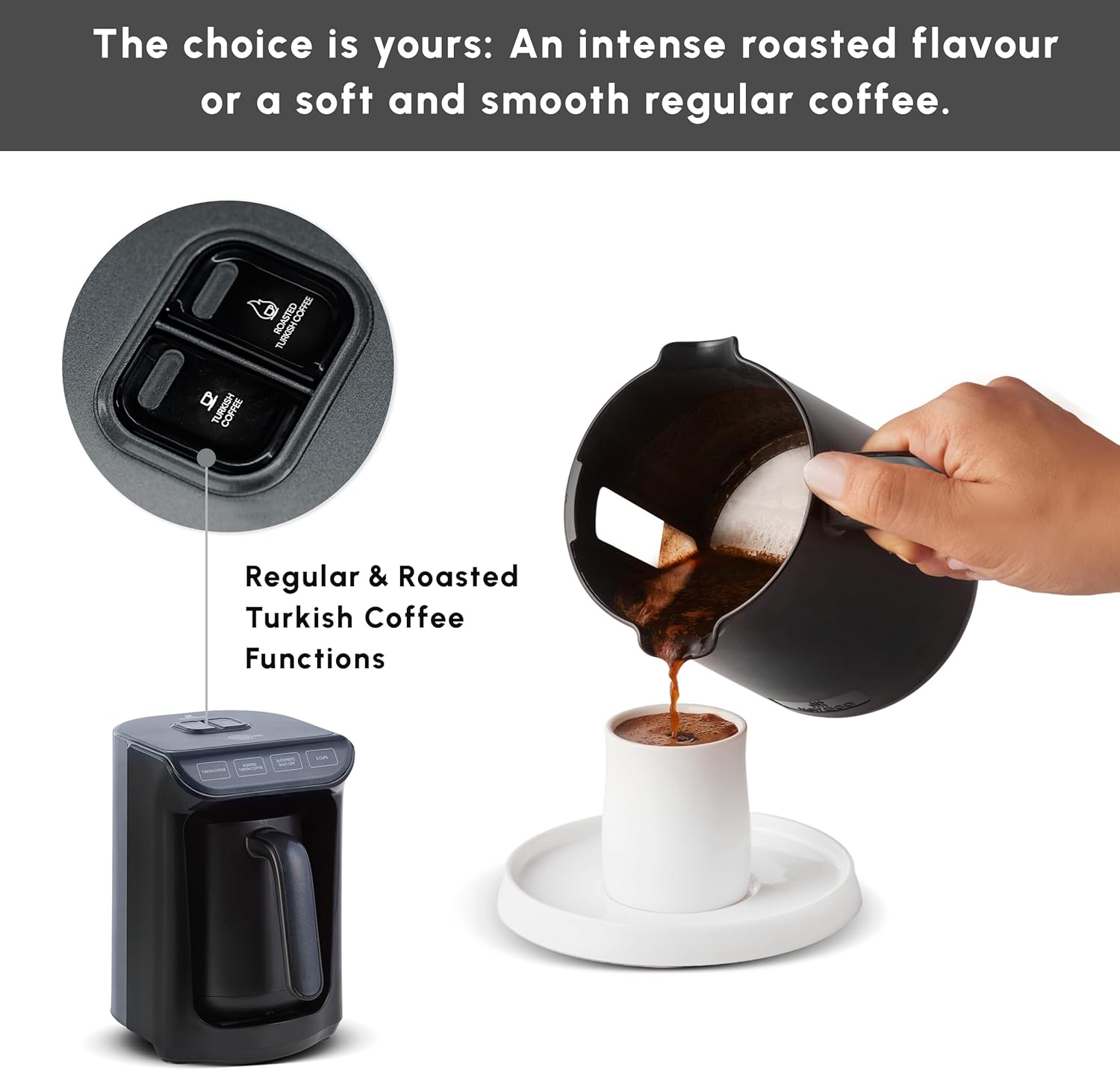 • Изпитайте най-доброто от двата свята, благодарение на функцията за приготвяне на традиционно турско кафе, както и на печено турско кафе, което осигурява по-интензивно и плътно вкусово изживяване - всичко това само с една иновативна машина.