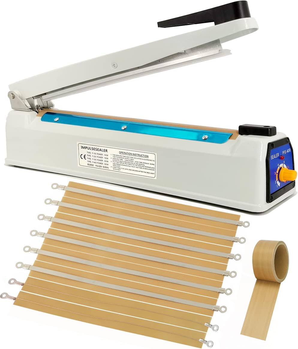 • 【Спецификация】--- Този уплътнител за фолио 400 мм; напрежение: 220 V. Ширина на уплътнението: 5 мм. Максимална дължина на термозапечатването: 400 мм. Максимална дебелина на термозапечатването: 0,3 мм. С 5 метра тефлонови ленти от високотемпературна тъкан и 8 броя резервни части за тефлонови ленти, включително 6 плоски жици (подходящи за запечатване), 2 кръгли жици (подходящи за отрязване на излишната част, която пластмасовата торбичка съдържа след запечатване. Тази функция изисква резервни части).