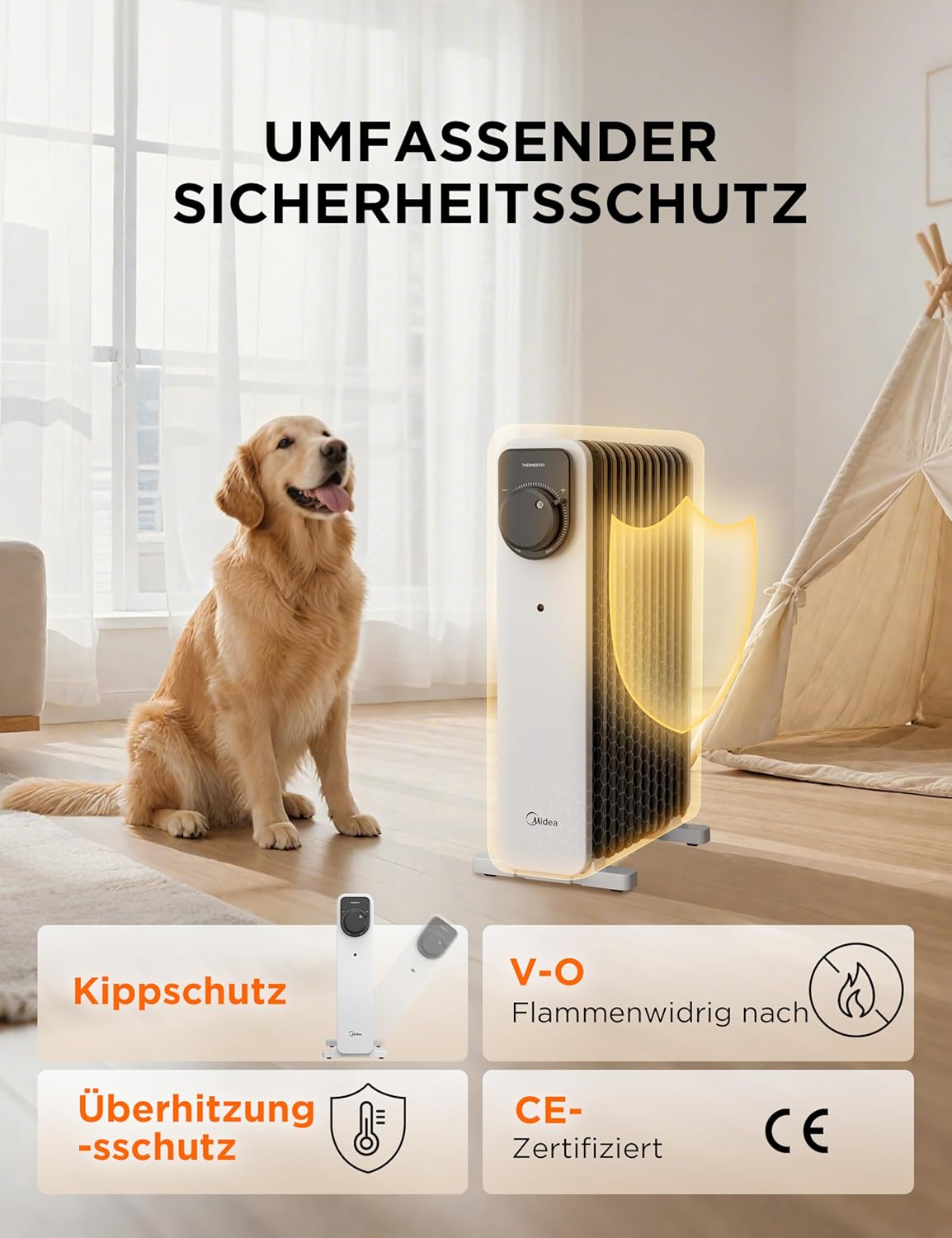 • Безопасен и надежден дизайн: Проектиран за приятна атмосфера, този маслен радиатор има автоматично изключване при преобръщане, както и защита от прегряване. Заоблените ъгли, безопасни за деца, и защитният заден капак помагат за предотвратяване на изгаряния и наранявания - за безопасността на вашето семейство, като същевременно се поддържа тиха и равномерна топлинна мощност.