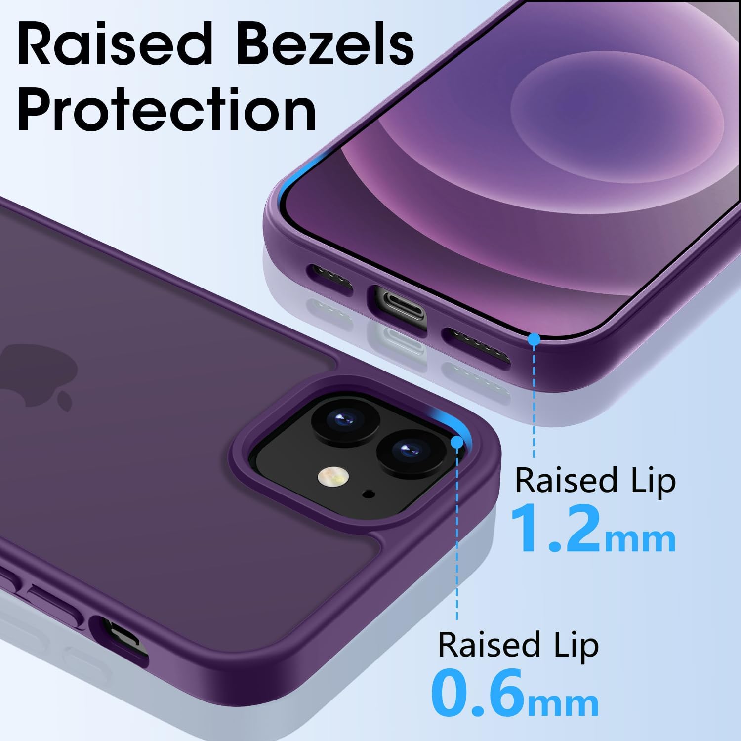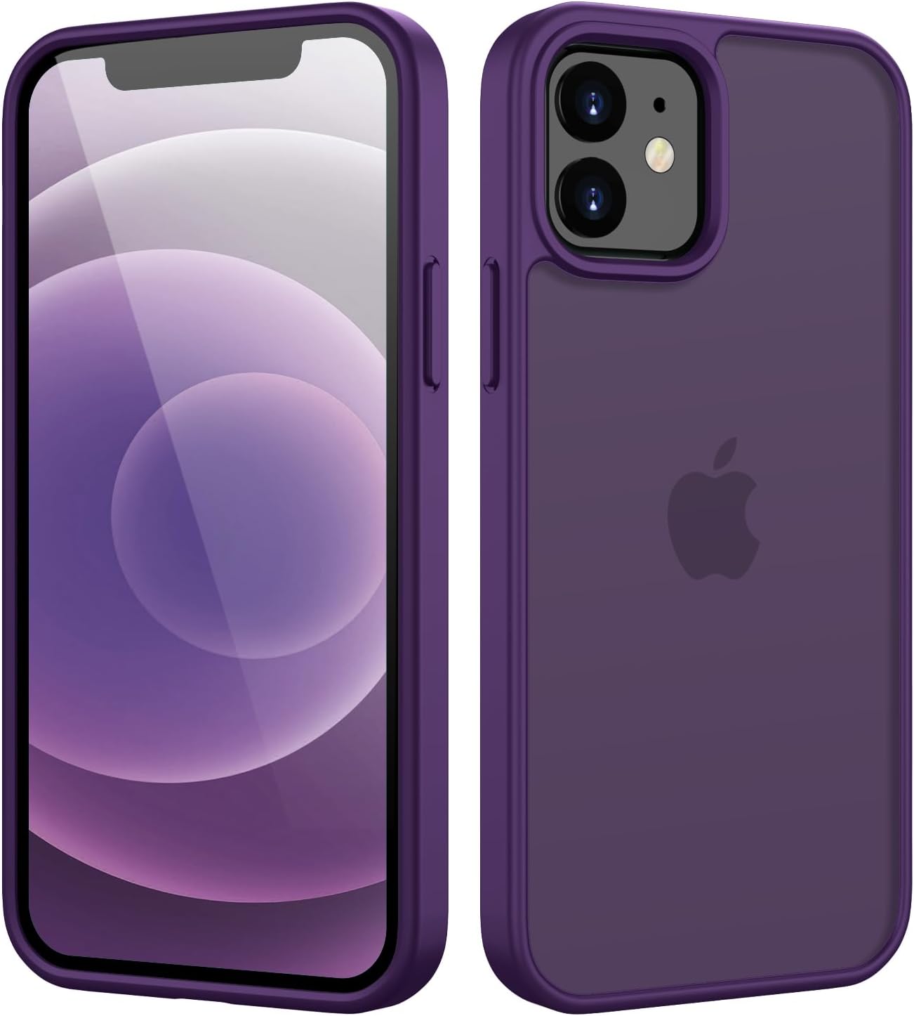 Матов калъф HGH за iPhone 12 Mini 5.4 инча [Военна защита] Защитен калъф Velvet Touch Matt против надраскване, прозрачен защитен калъф за гръб, против пръстови отпечатъци (тъмно лилав)
