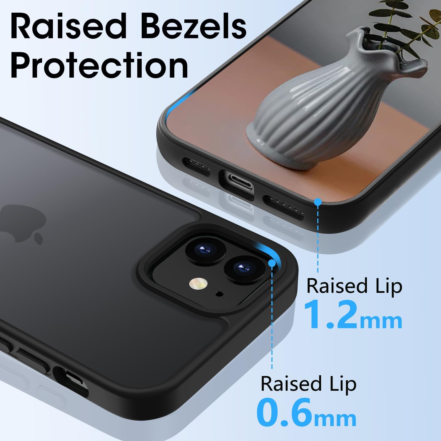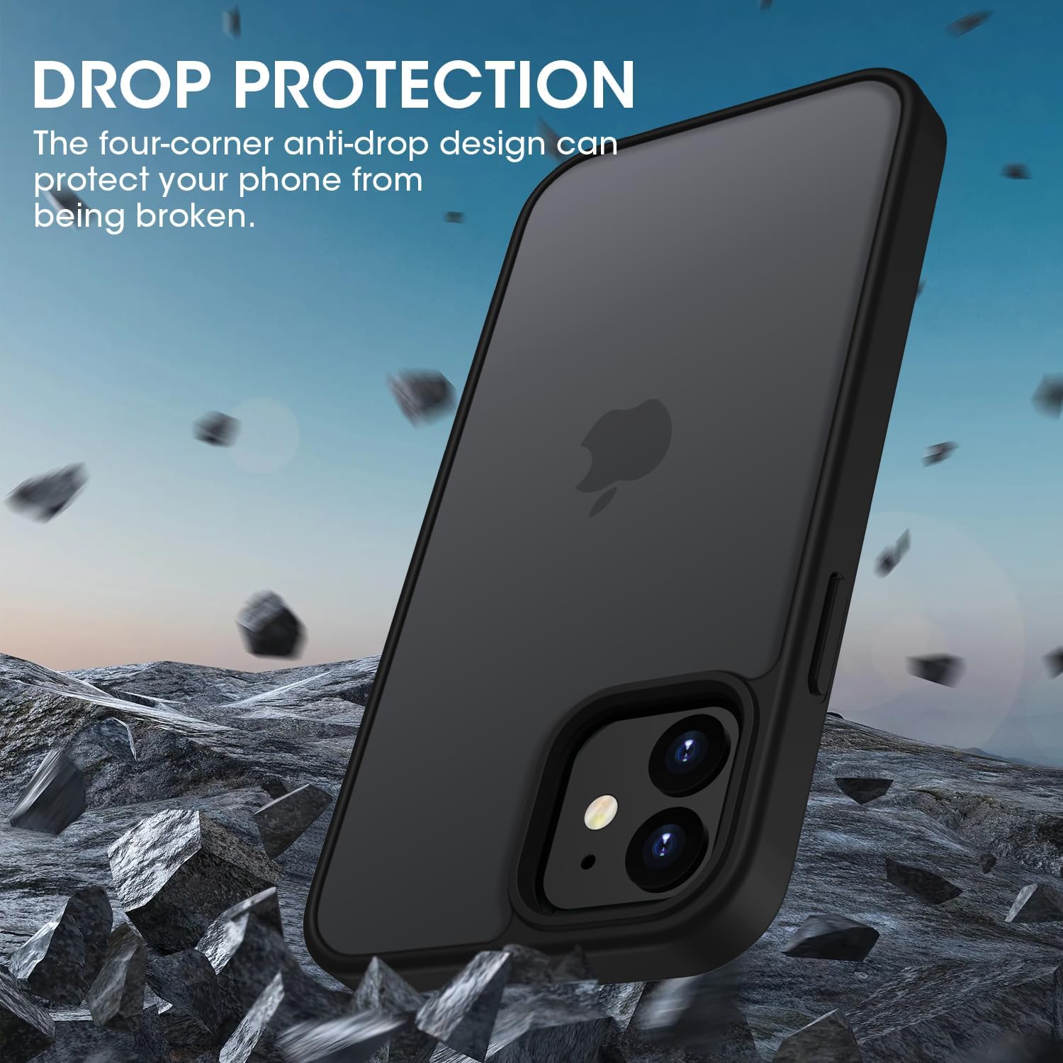 Матов калъф HGH за iPhone 12/12 Pro 6.1 инча, [Военна защита] Защитен калъф Velvet Touch Matt, устойчив на надраскване, прозрачен защитен калъф за гръб, против пръстови отпечатъци (черен)