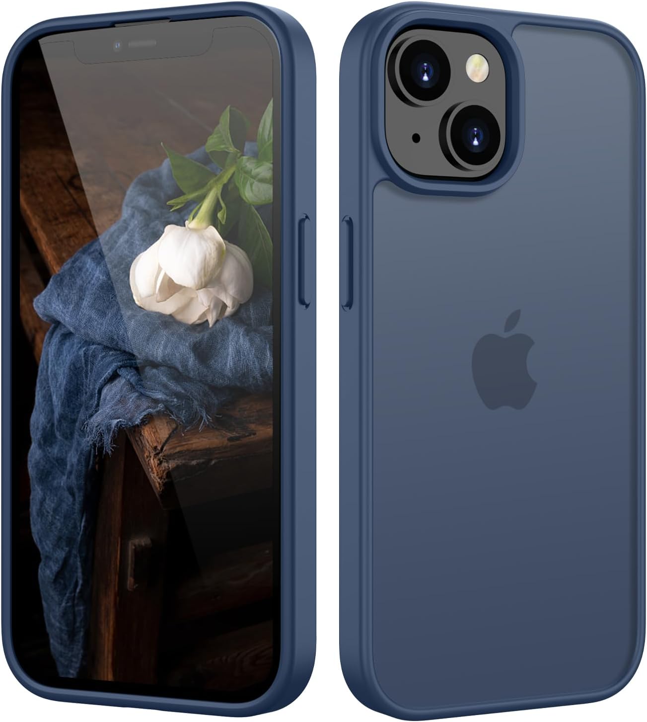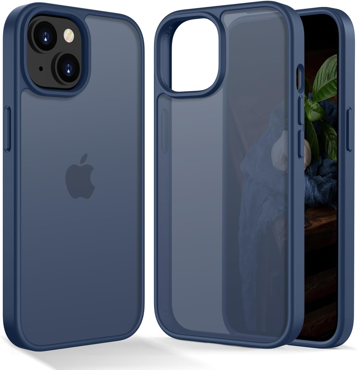 Матов калъф HGH за iPhone 13 Mini 5.4 инча, военна защита, кадифен матов калъф, устойчив на надраскване, прозрачен защитен калъф за гръб, против пръстови отпечатъци (тъмносин)