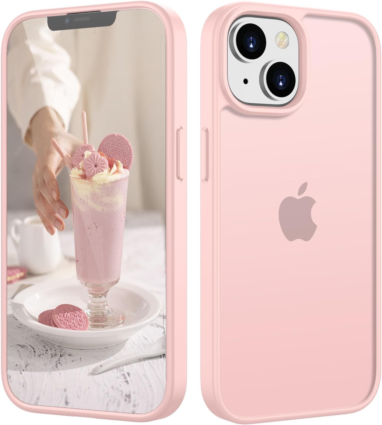Матов калъф HGH за iPhone 13 Mini 5.4 инча, военна защита, защитен калъф от кадифено матово кадифено покритие, устойчив на надраскване, прозрачен защитен калъф за гръб, калъф против пръстови отпечатъци (розов)