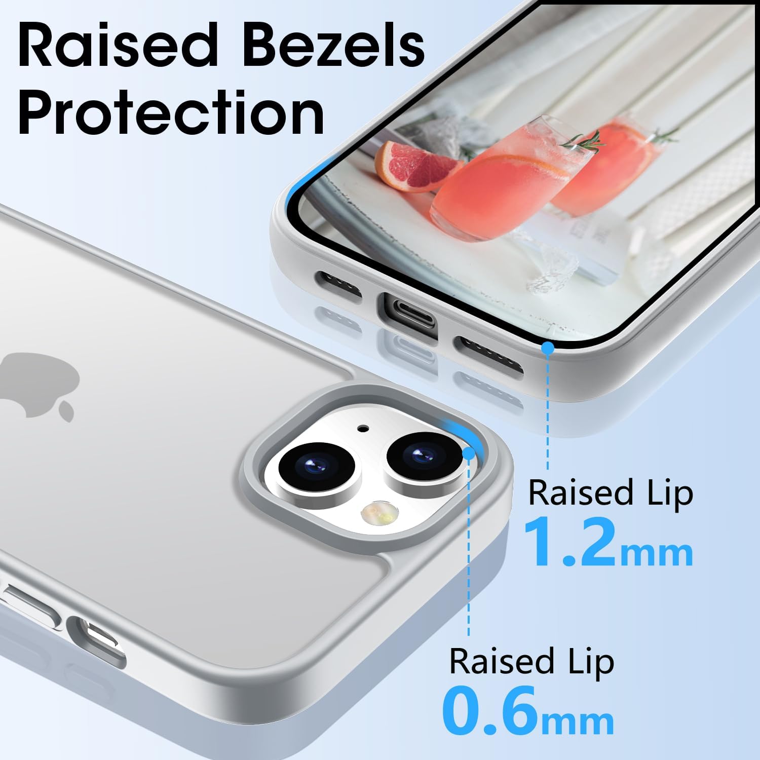 • Прозрачен матов гръб: Матовият, прозрачен калъф за iPhone 13 Mini безпроблемно съчетава издръжливост и стил. Той е с гъвкава рамка от термопластичн полиуретан (TPU) и твърд гръб от поликарбонат (PC) с матово покритие, което му придава копринено усещане и е неплъзгащо, без пръстови отпечатъци и лесно за почистване. Междувременно, благодарение на полупрозрачния гръб, все още можете да се насладите на деликатното лого на телефона си.