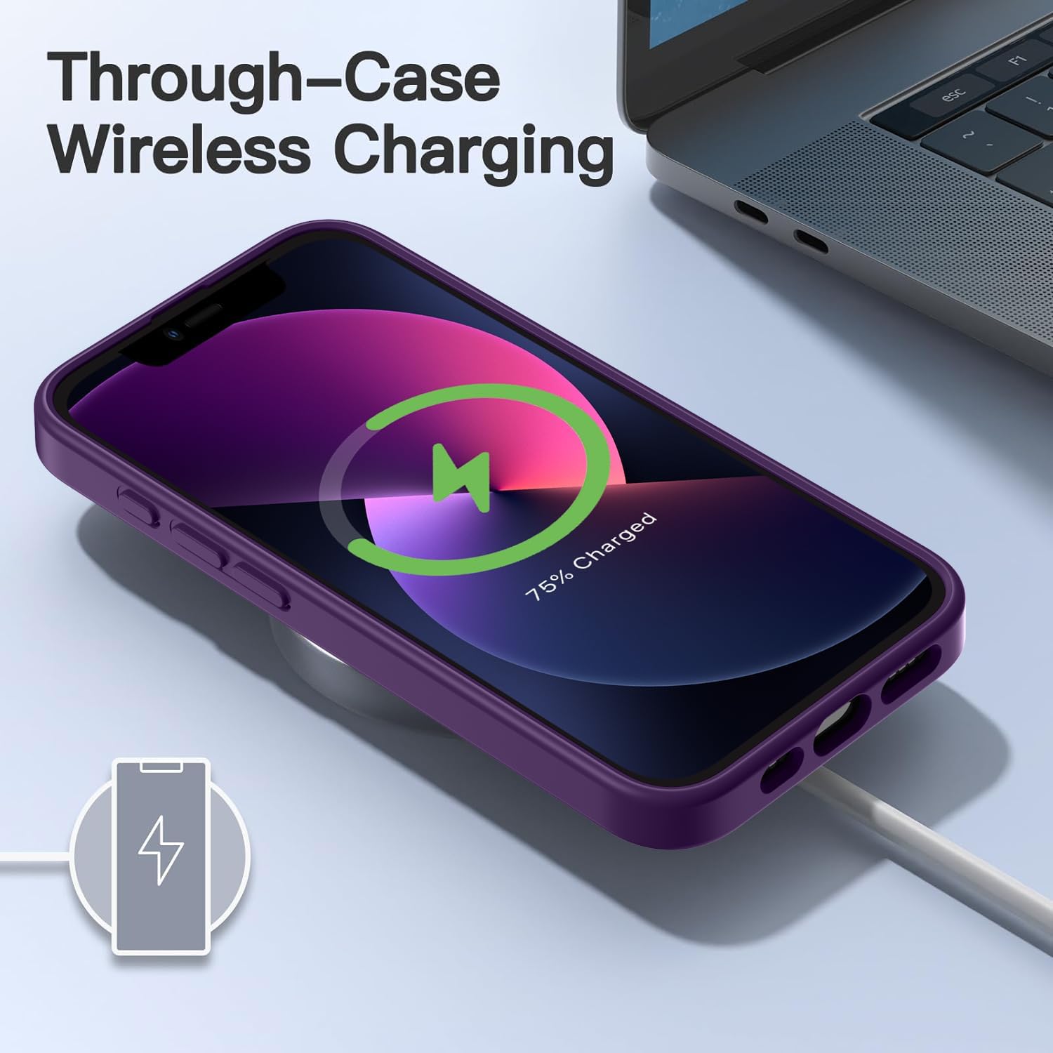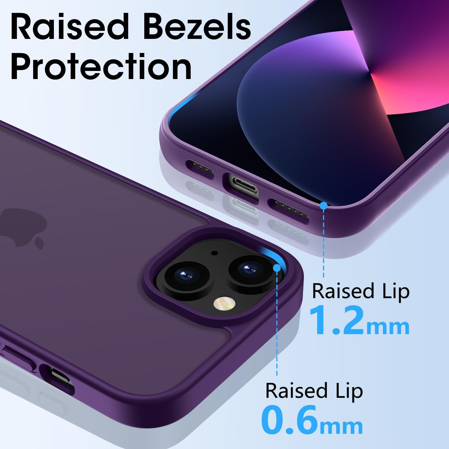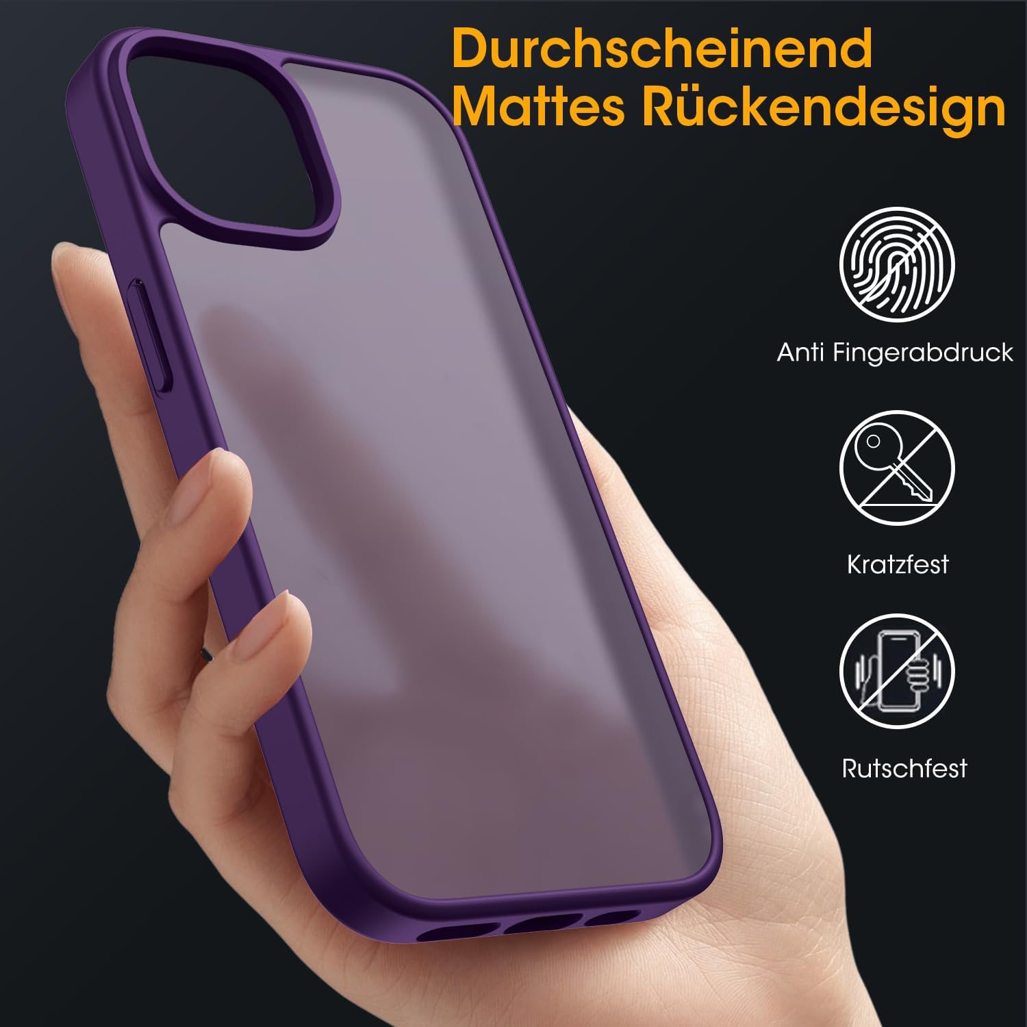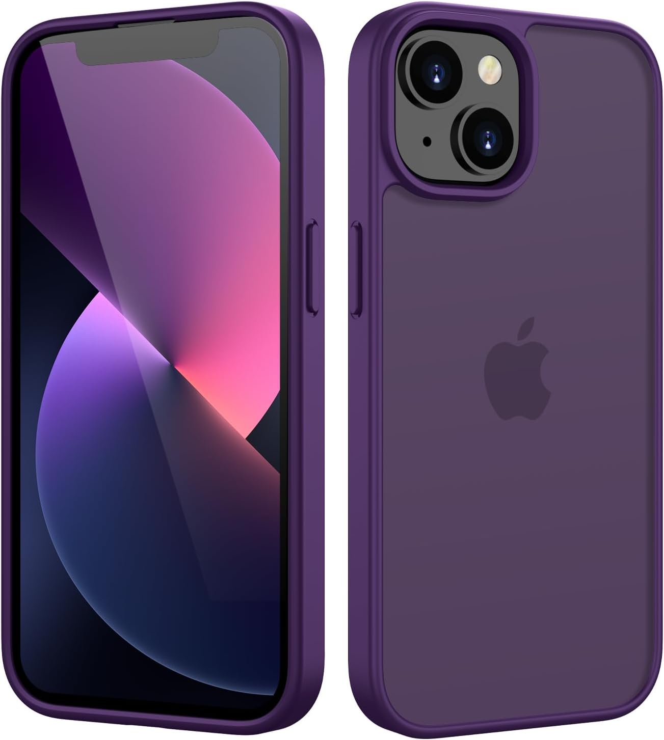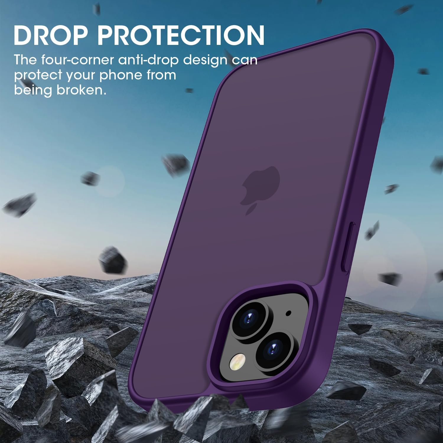 Матов калъф HGH за iPhone 13 Mini 5.4 инча, военна защита, защитен калъф от кадифено покритие, матов, устойчив на надраскване, прозрачен защитен калъф за гръб, против пръстови отпечатъци (тъмно лилав)
