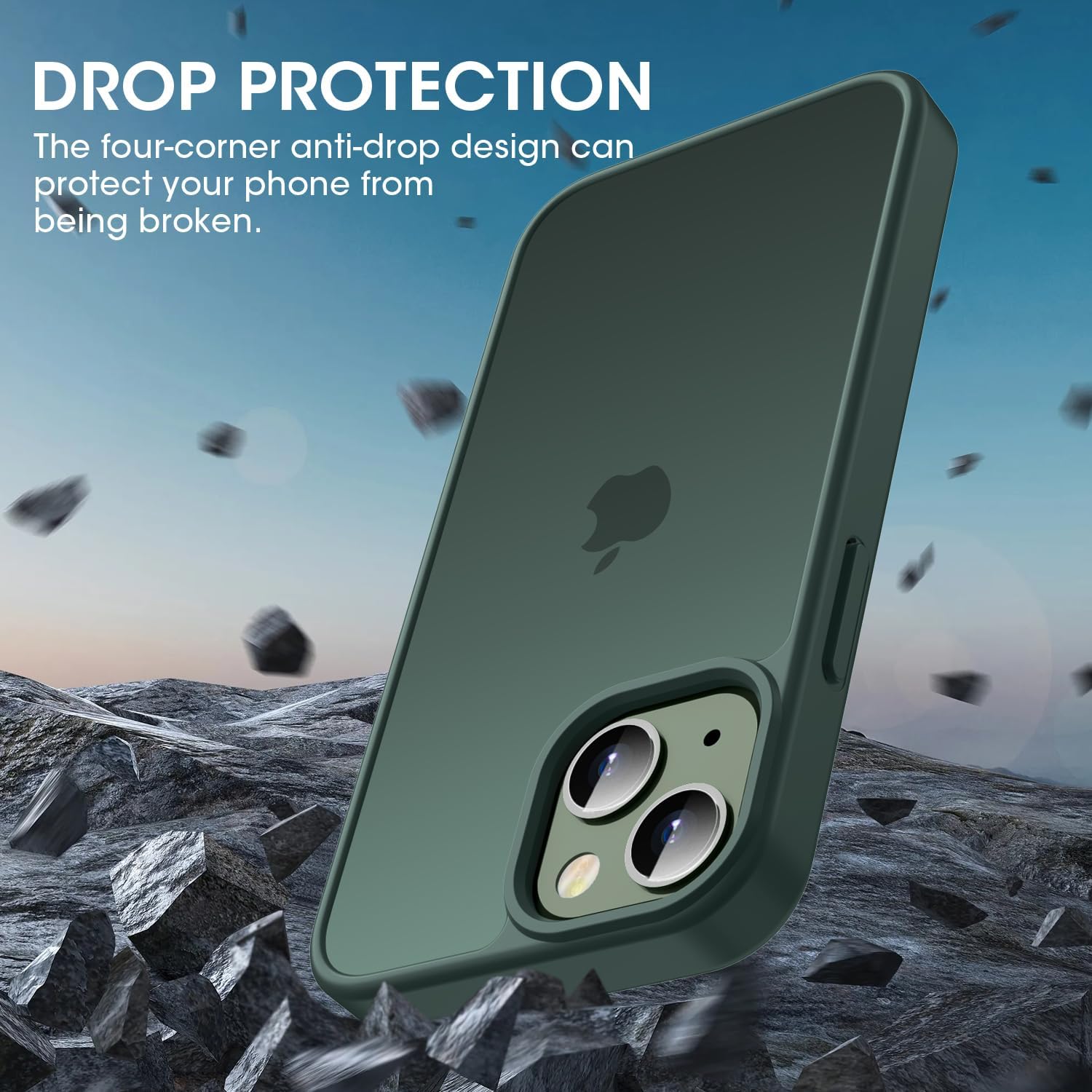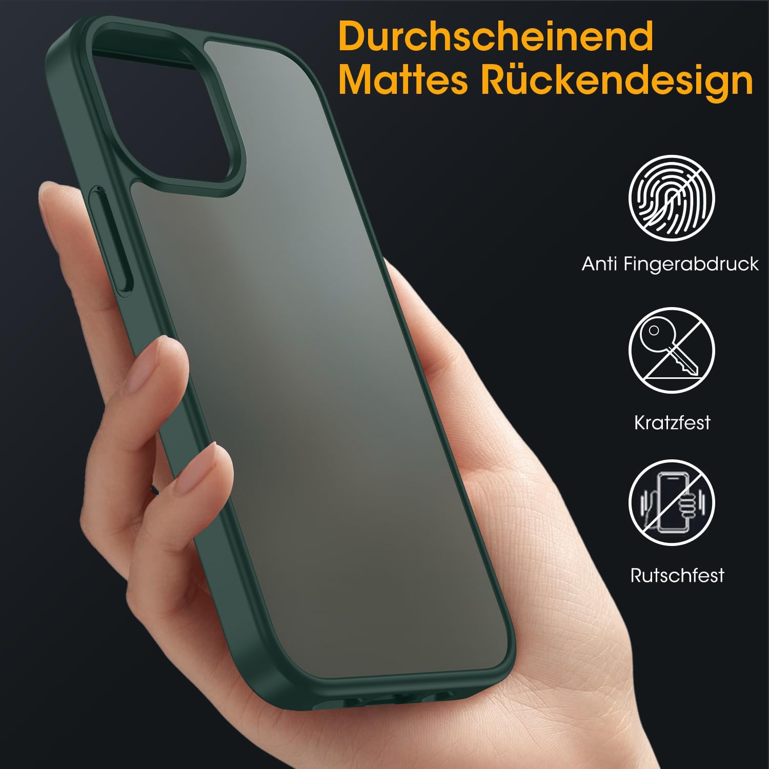 Матов калъф HGH за iPhone 13 Mini 5.4 инча [Военна защита] Защитен калъф Velvet Touch Matt против надраскване, прозрачен защитен калъф за гръб, против пръстови отпечатъци (зелен)
