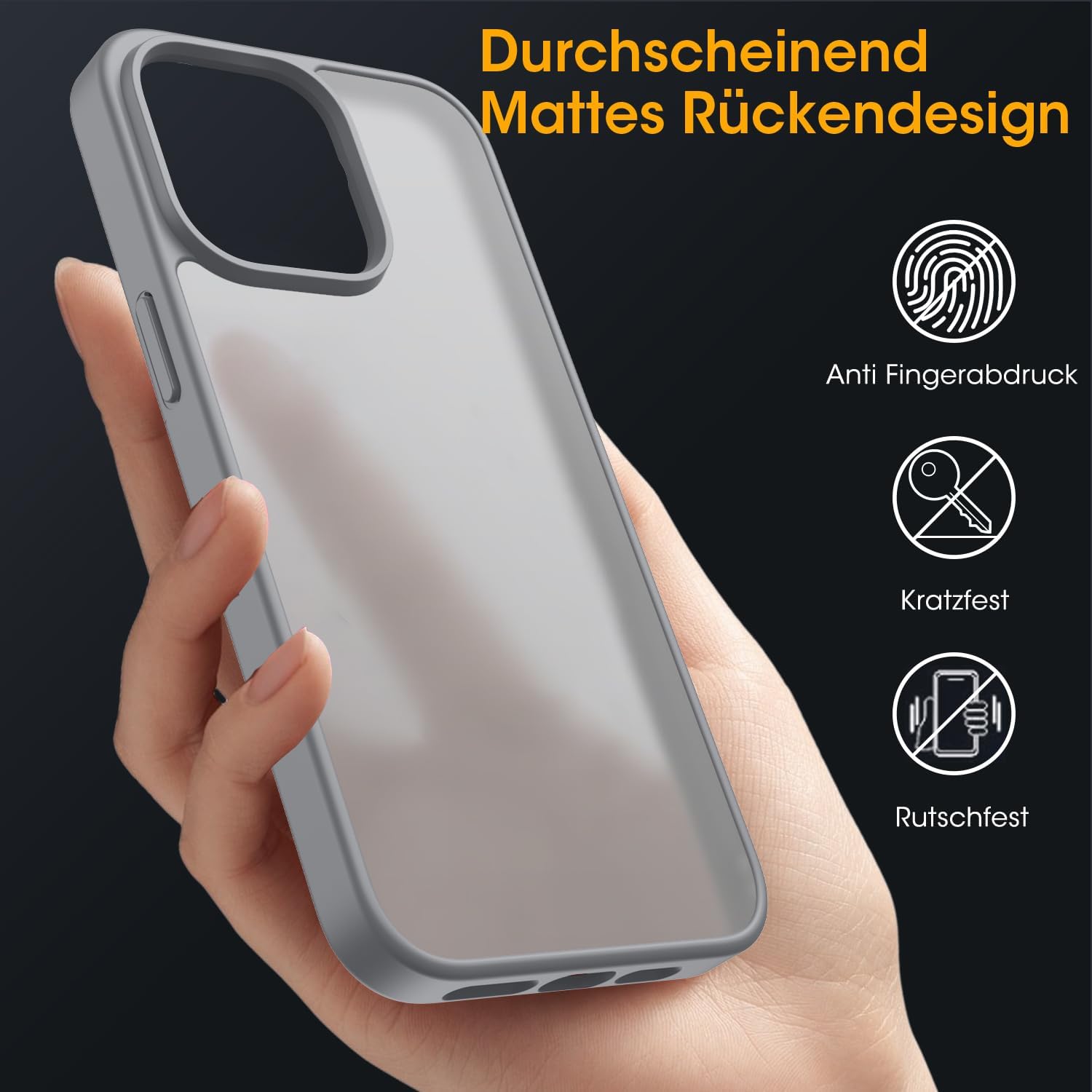 Матов калъф HGH за iPhone 13 Pro 6.1 инча, военен защитен калъф, кадифен матов, устойчив на надраскване, прозрачен защитен калъф за гръб, против пръстови отпечатъци (титаниево сив)