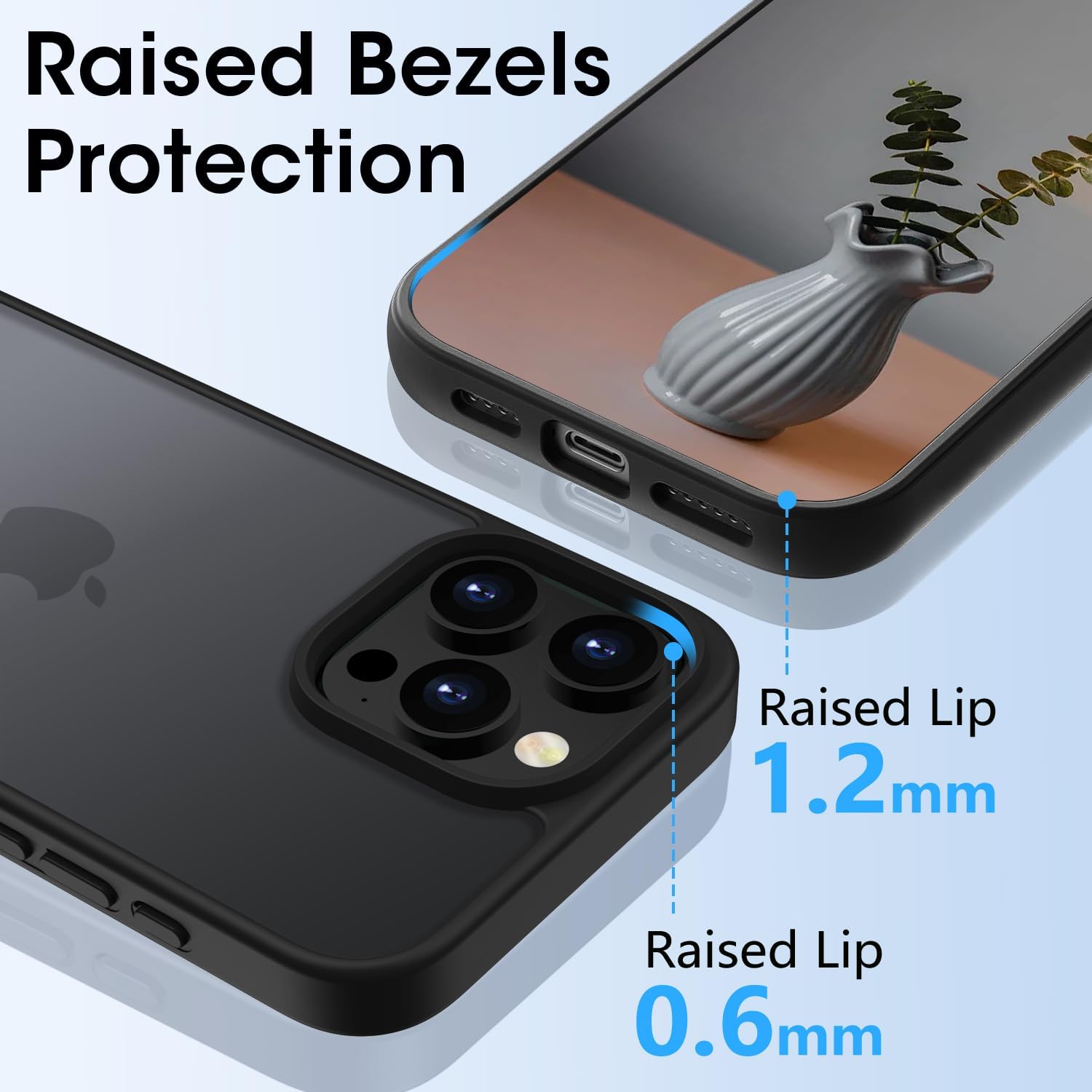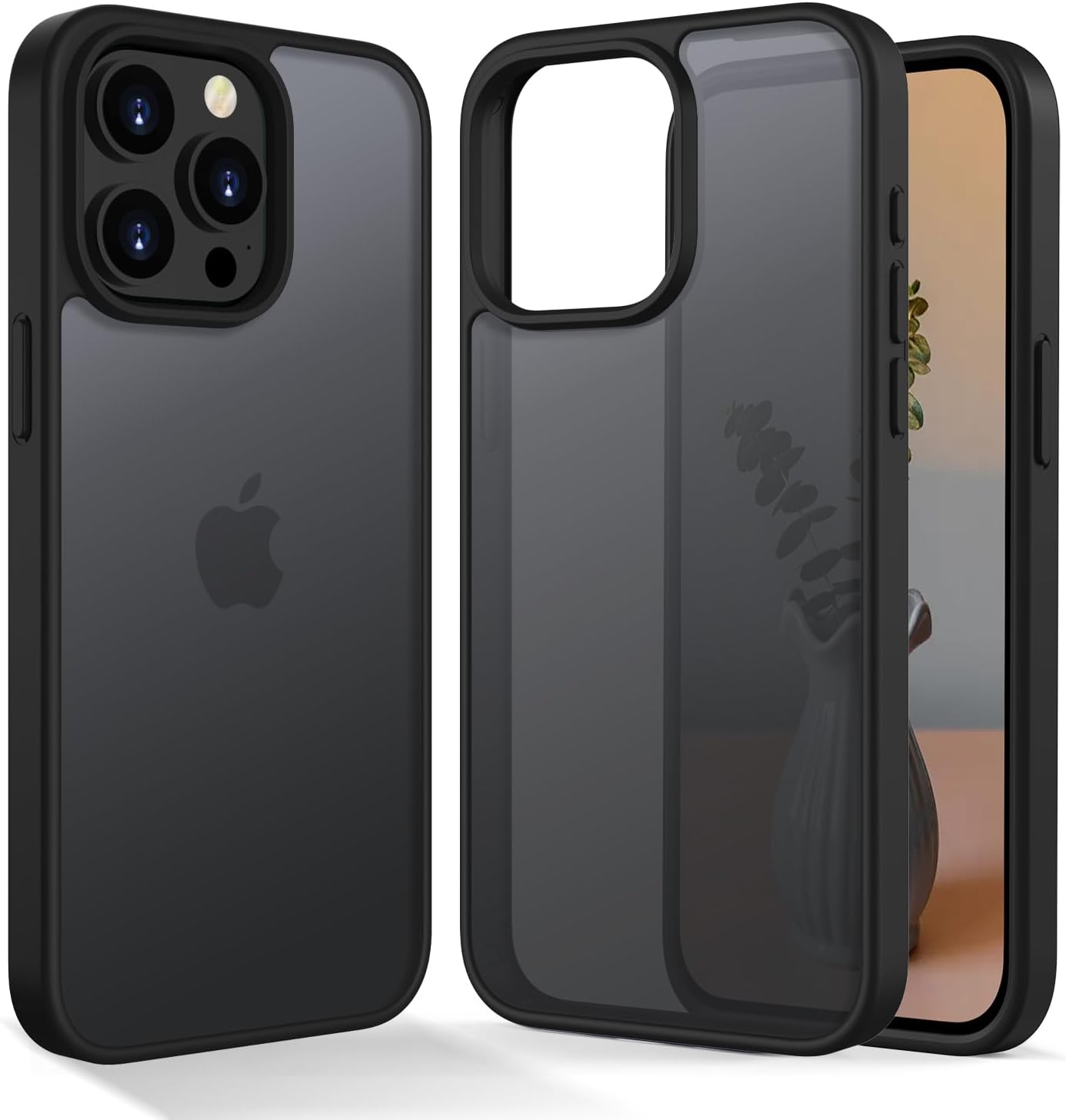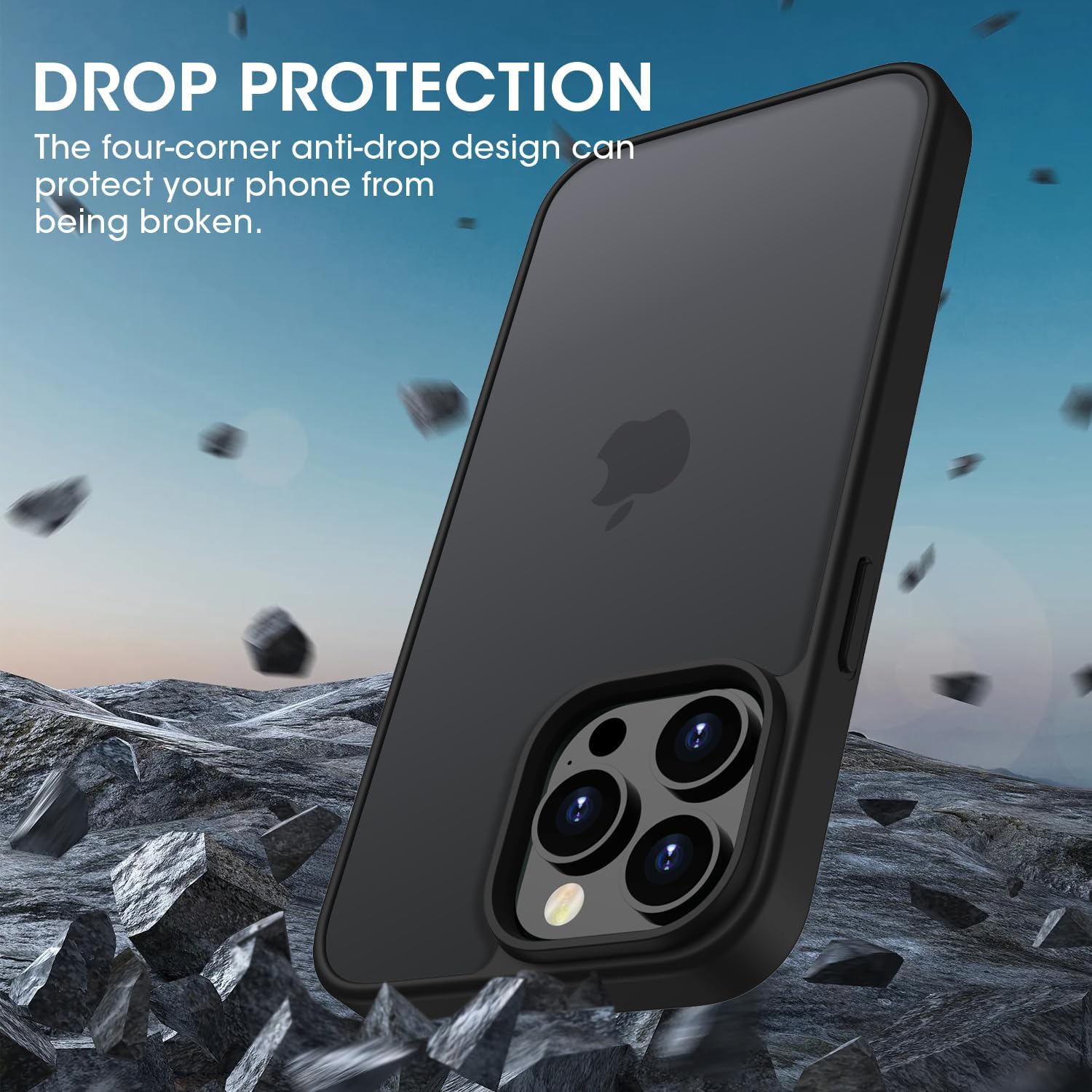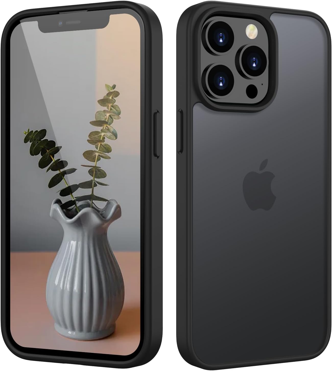 Матов калъф HGH за iPhone 13 Pro 6.1 инча [Военна защита] Защитен калъф Velvet Touch Matt против надраскване, прозрачен защитен калъф за гръб, против пръстови отпечатъци (черен)