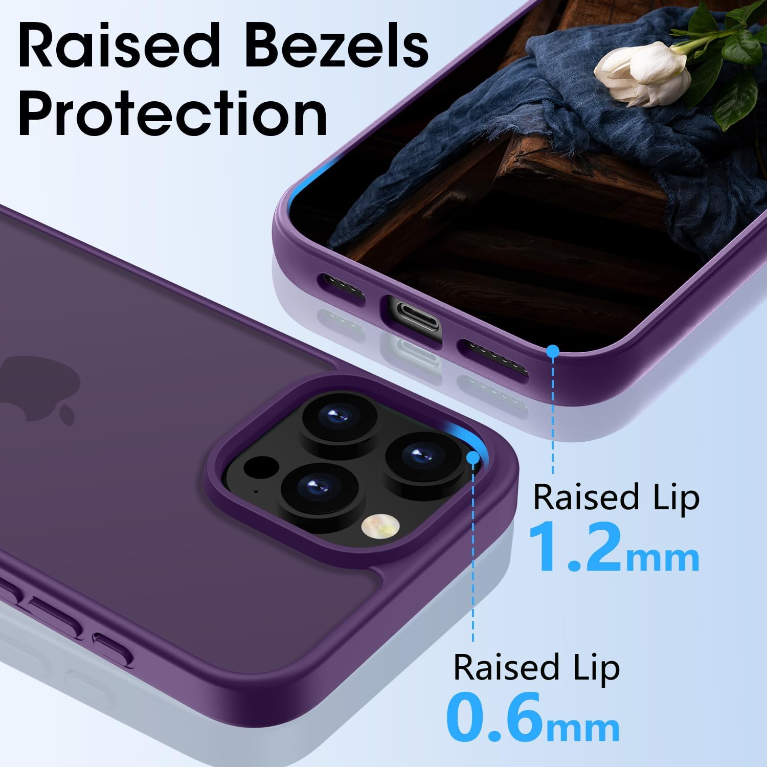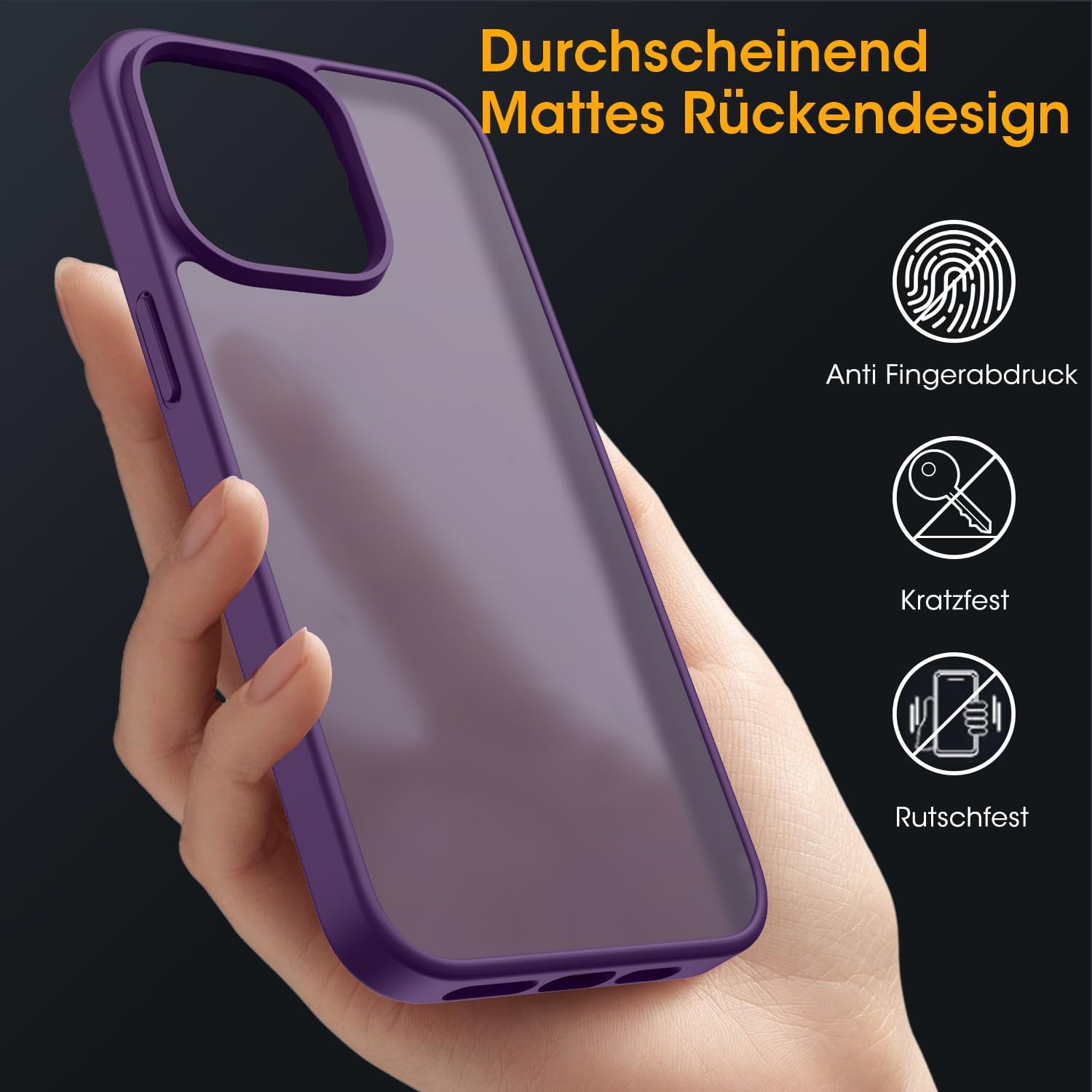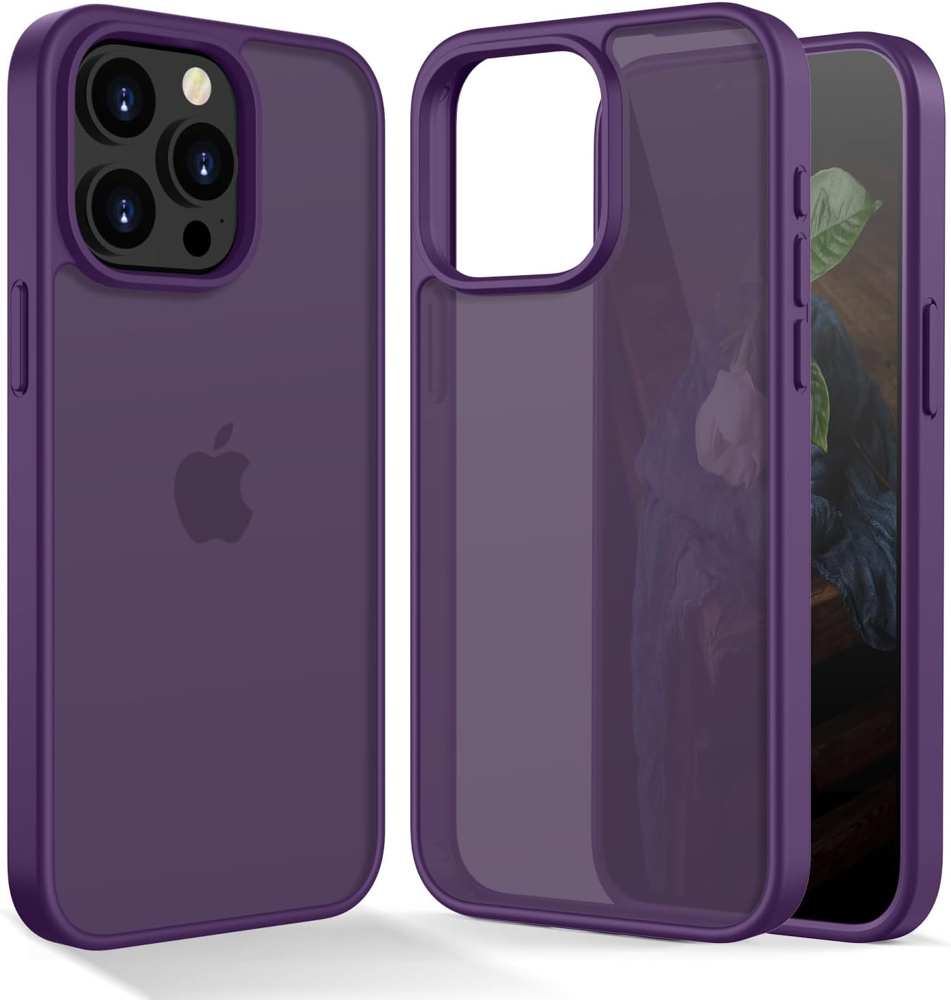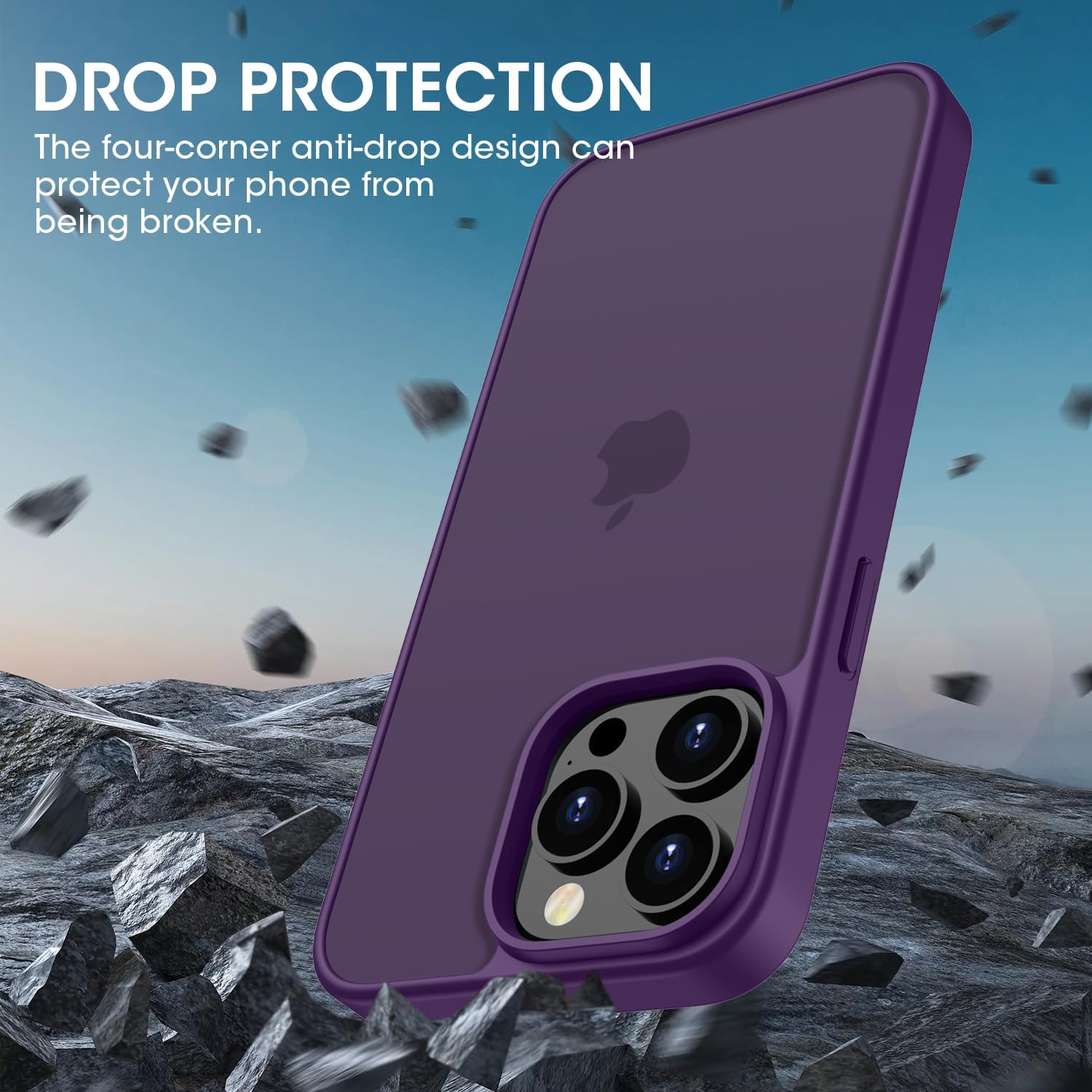 Матов калъф HGH за iPhone 13 Pro 6.1 инча [Военна защита] Защитен калъф Velvet Touch Matt против надраскване, прозрачен защитен калъф за гръб, против пръстови отпечатъци (тъмно лилав)