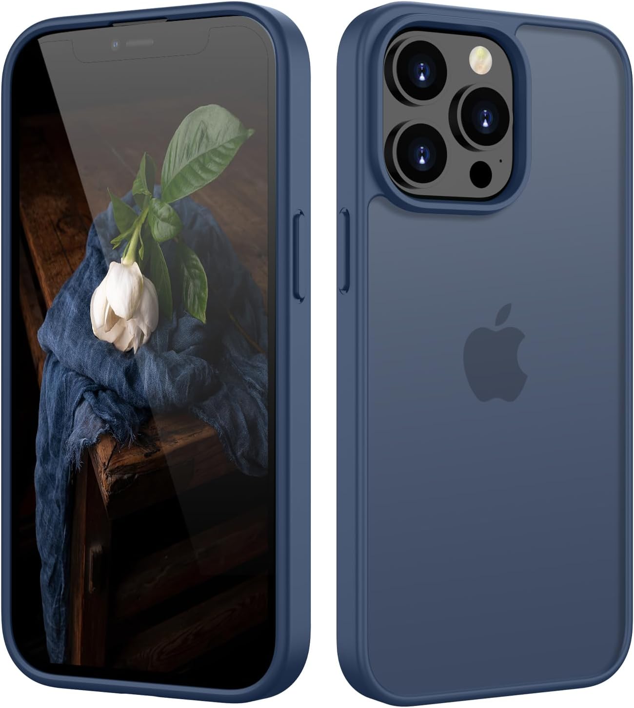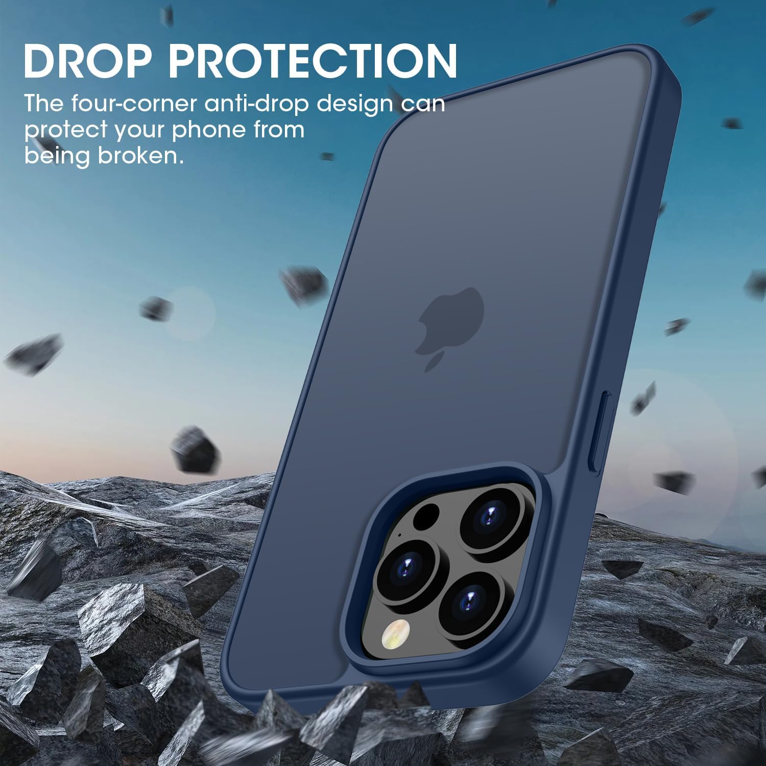 Матов калъф HGH за iPhone 13 Pro 6.1 инча [Военна защита] Защитен калъф Velvet Touch Matt против надраскване, прозрачен защитен калъф за гръб, против пръстови отпечатъци (тъмносин)