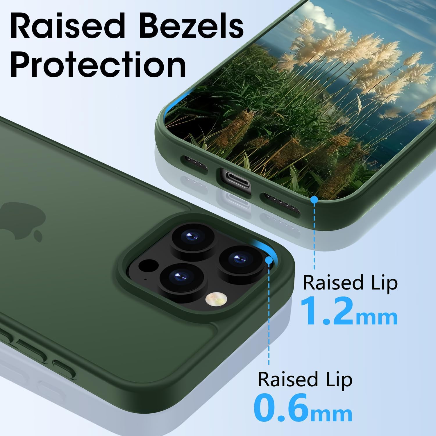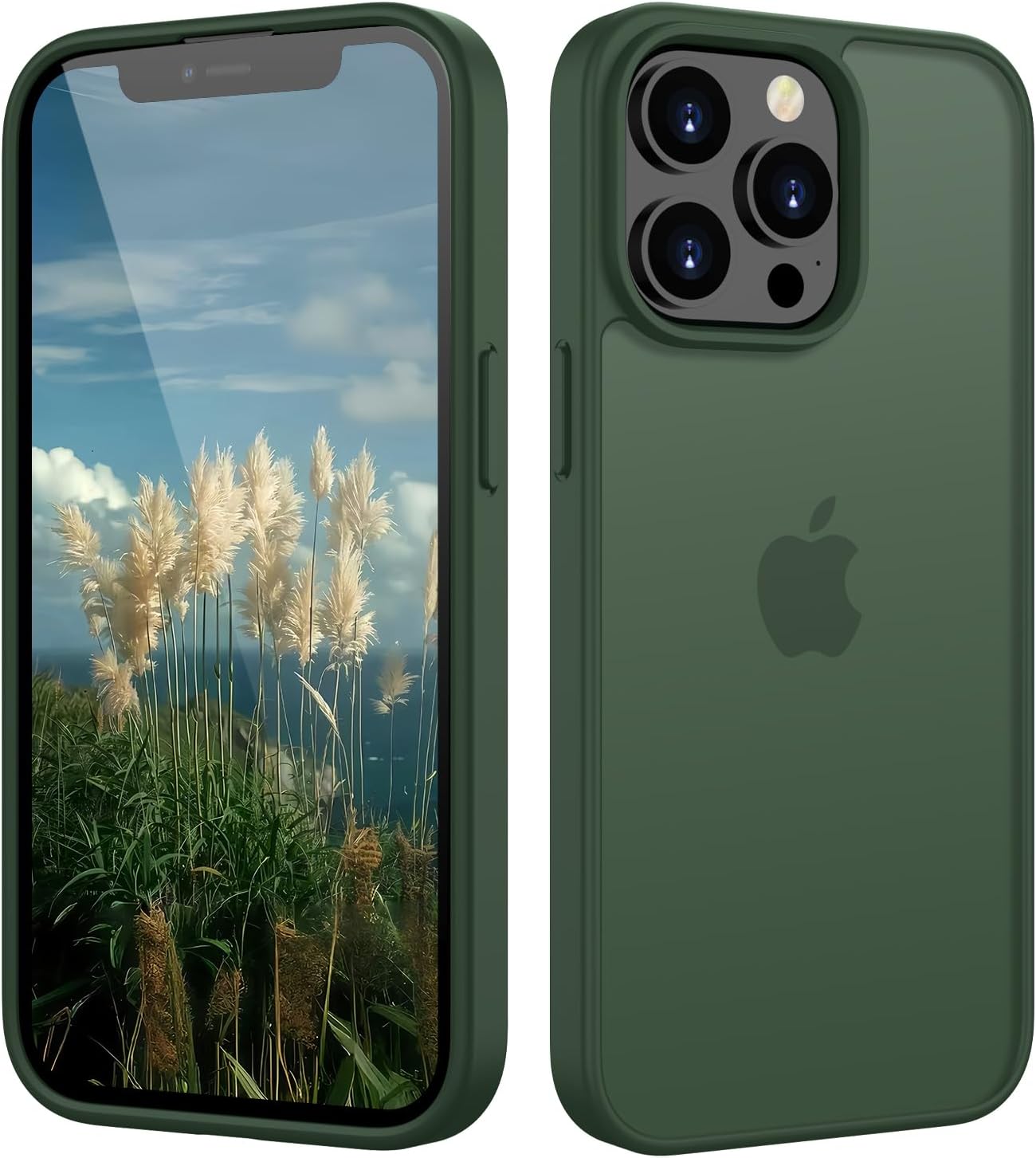 Матов калъф HGH за iPhone 13 Pro 6.1 инча [Военна защита] Защитен калъф Velvet Touch Matt против надраскване, прозрачен защитен калъф за гръб, против пръстови отпечатъци (тъмнозелен)