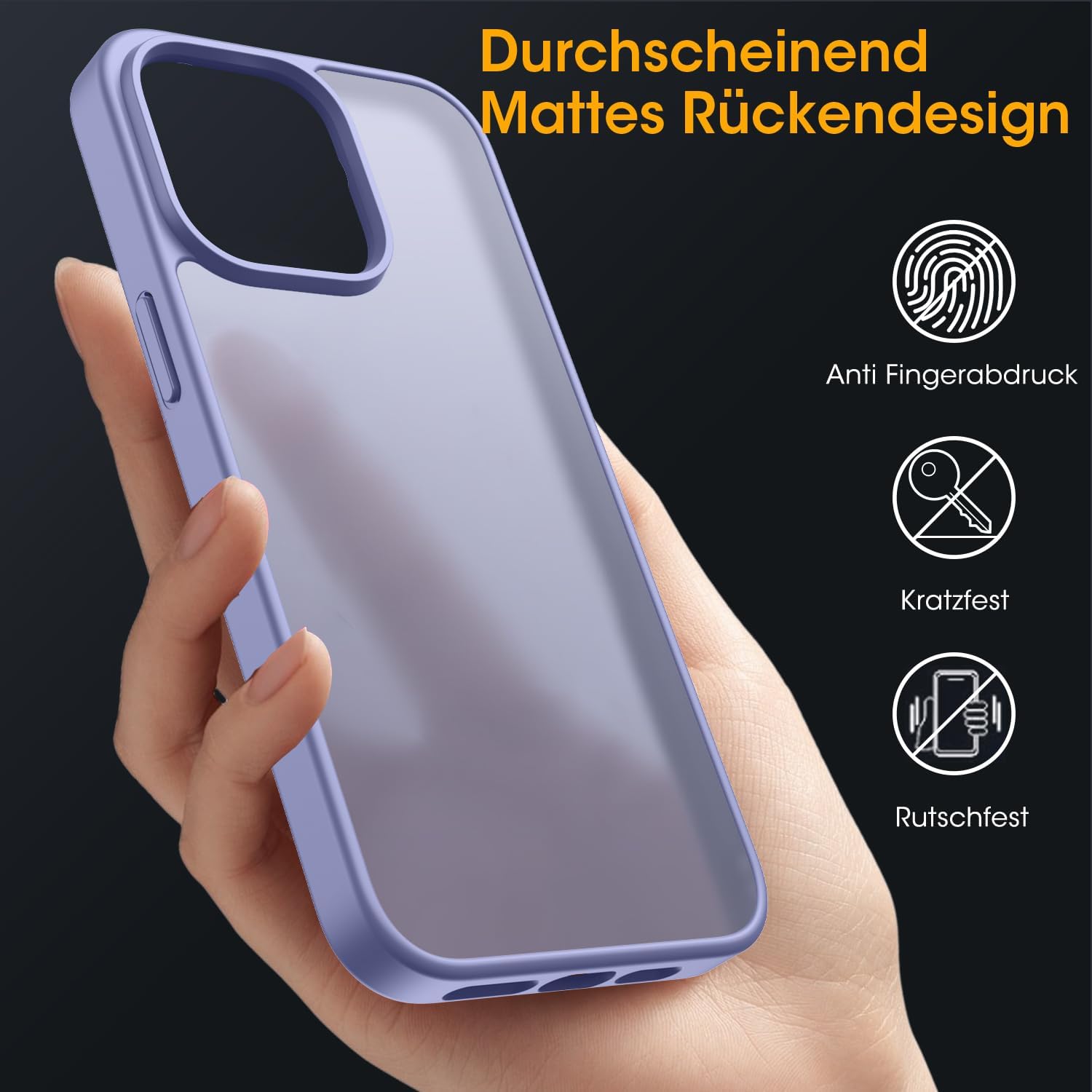 Матов калъф HGH за iPhone 13 Pro 6.1 инча [Военна защита] Защитен калъф Velvet Touch Matt, устойчив на надраскване, прозрачен защитен калъф за гръб, против пръстови отпечатъци (лилав)