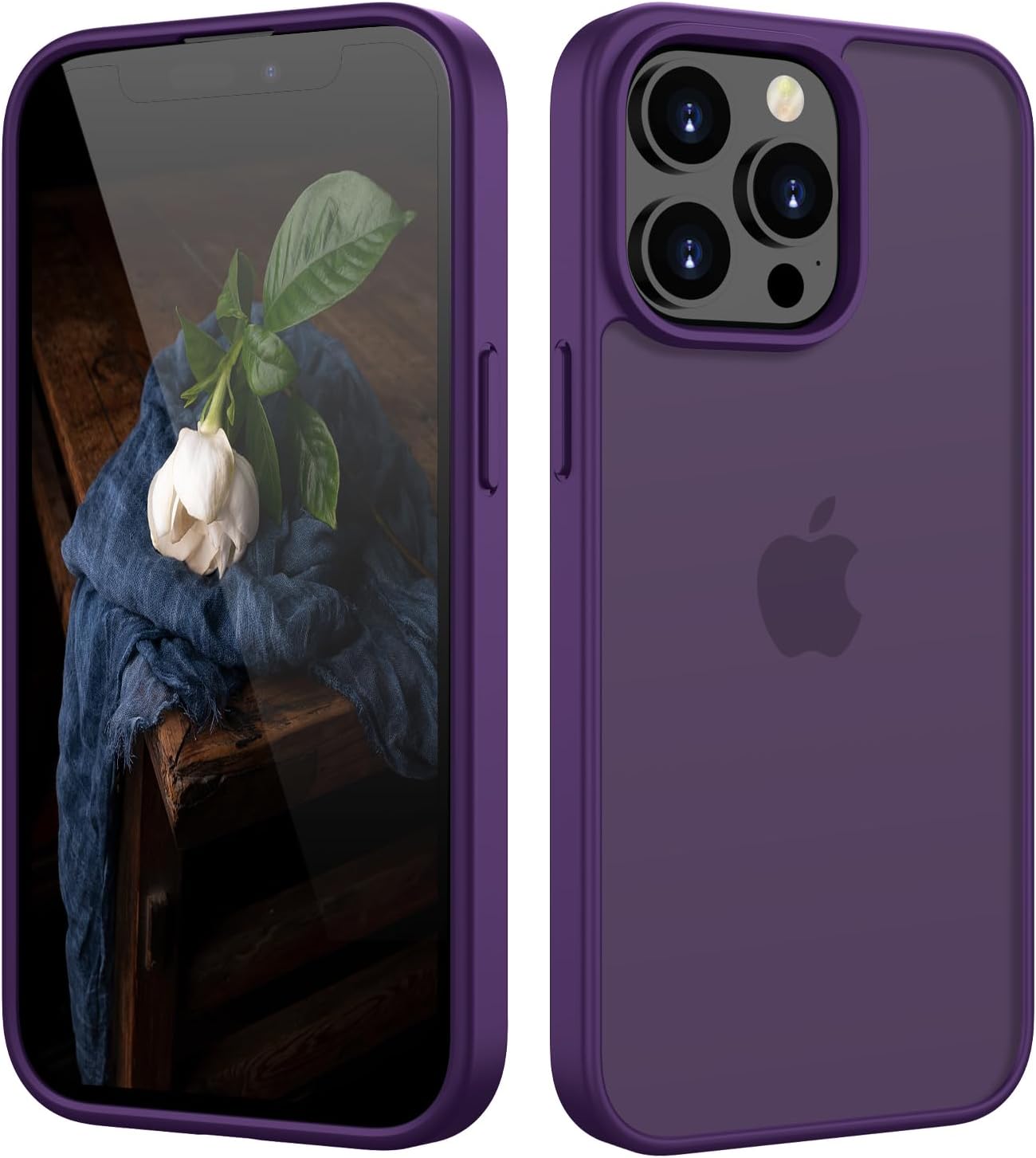 Матов калъф HGH за iPhone 13 Pro Max 6.7 инча, военна защита, кадифен матов калъф, устойчив на надраскване, прозрачен защитен калъф за гръб, против пръстови отпечатъци (тъмно лилав)