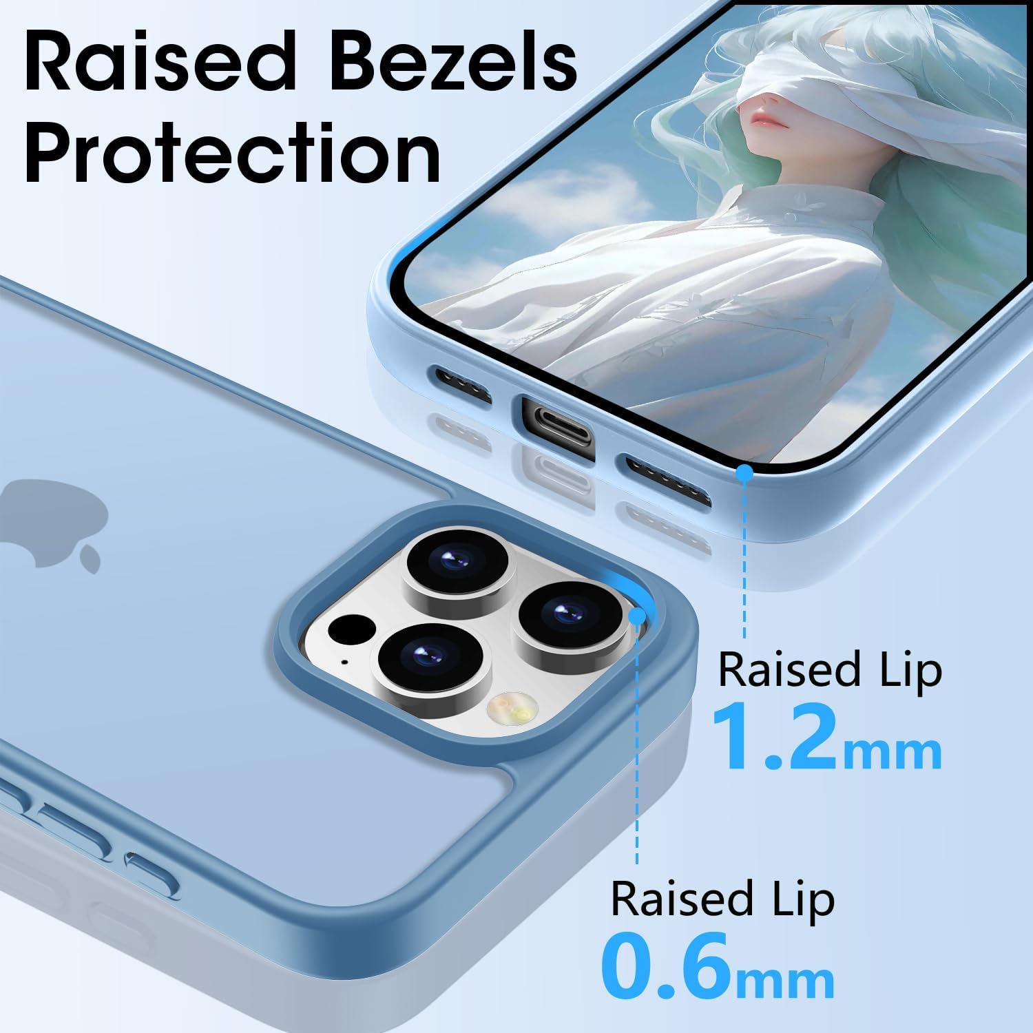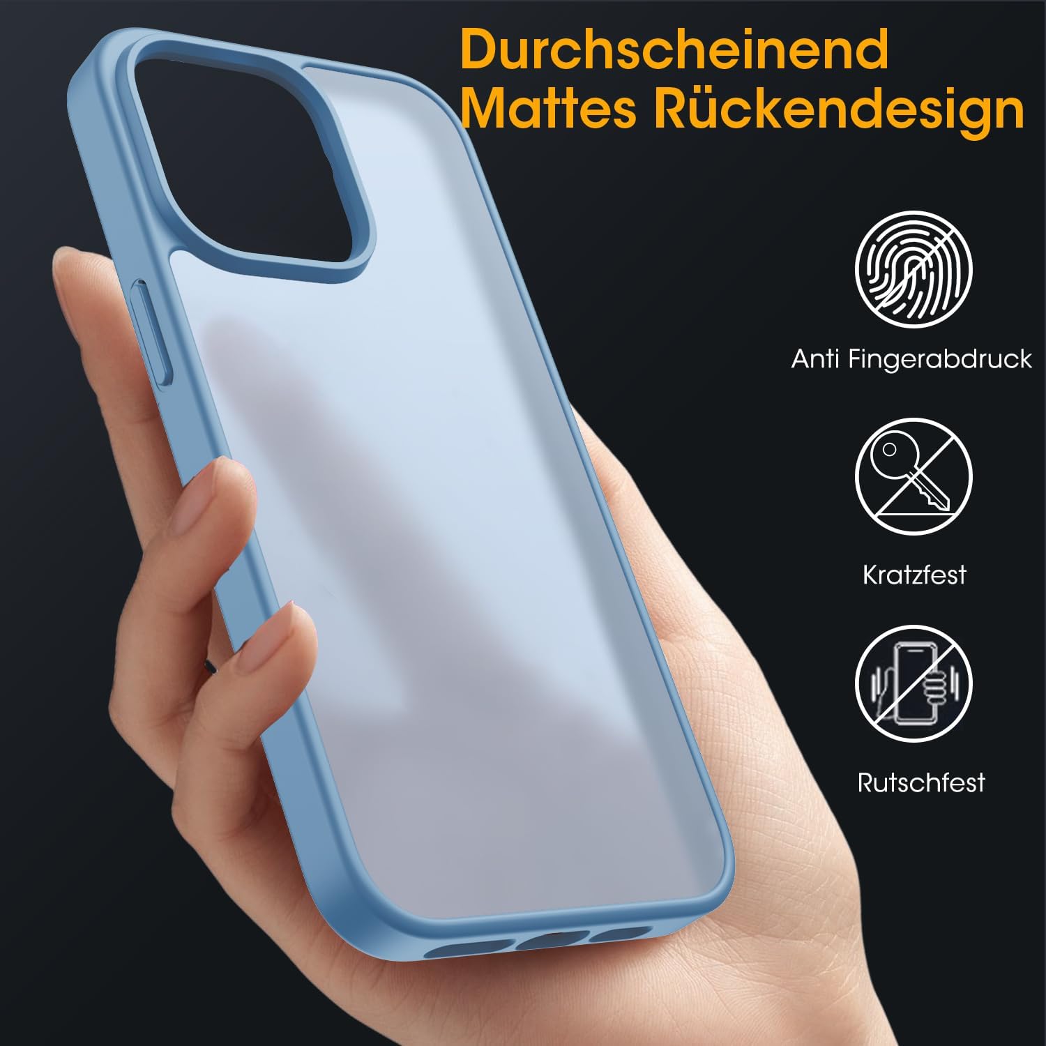 Матов калъф HGH за iPhone 13 Pro Max 6.7 инча, военна защита, защитен калъф от кадифено покритие, матов, против надраскване, прозрачен защитен калъф за гръб, против пръстови отпечатъци (бебешко син)