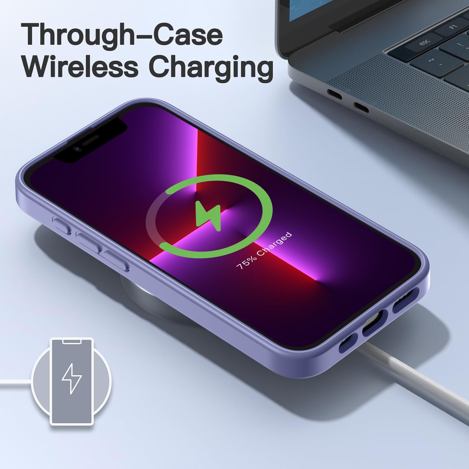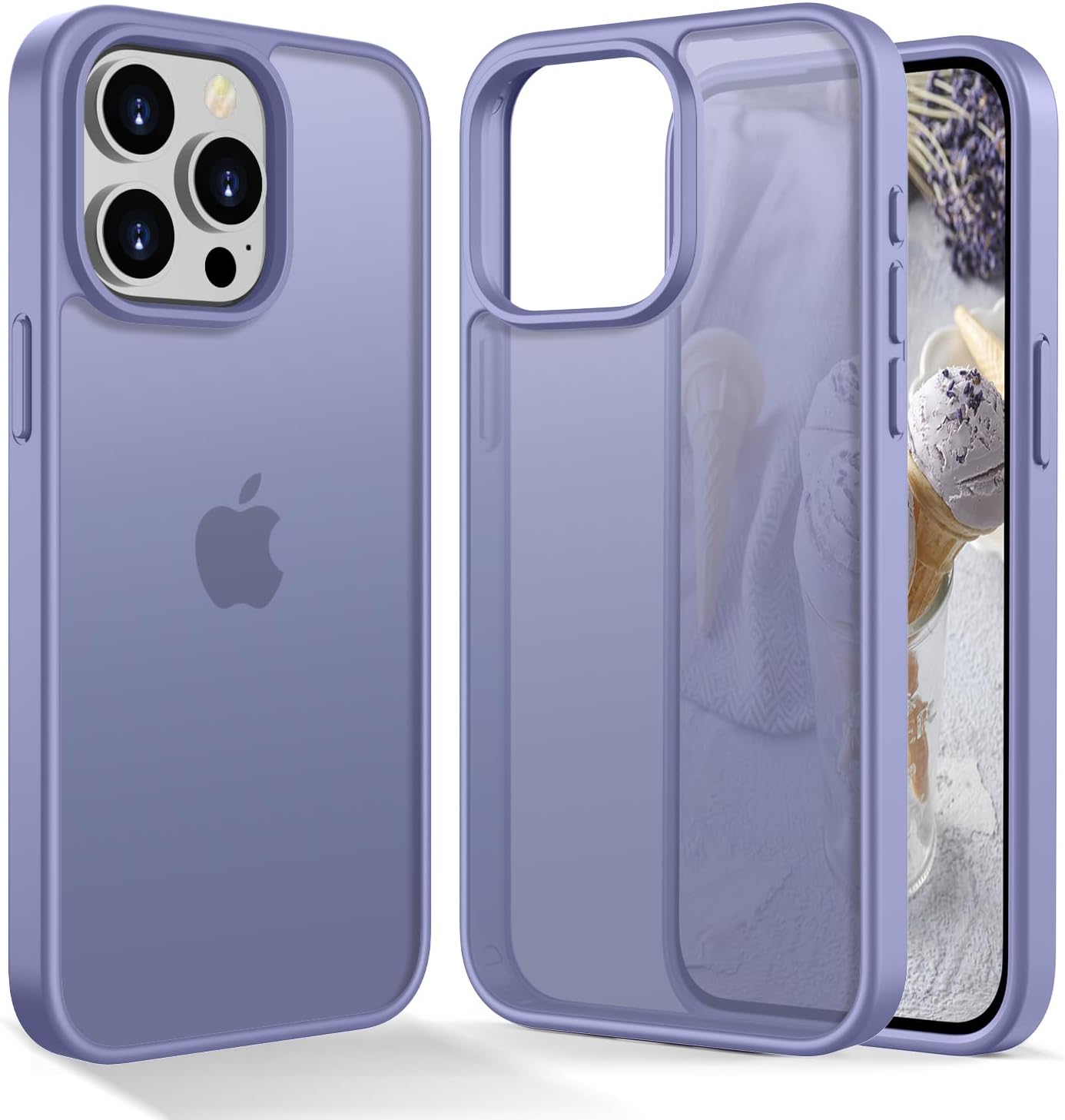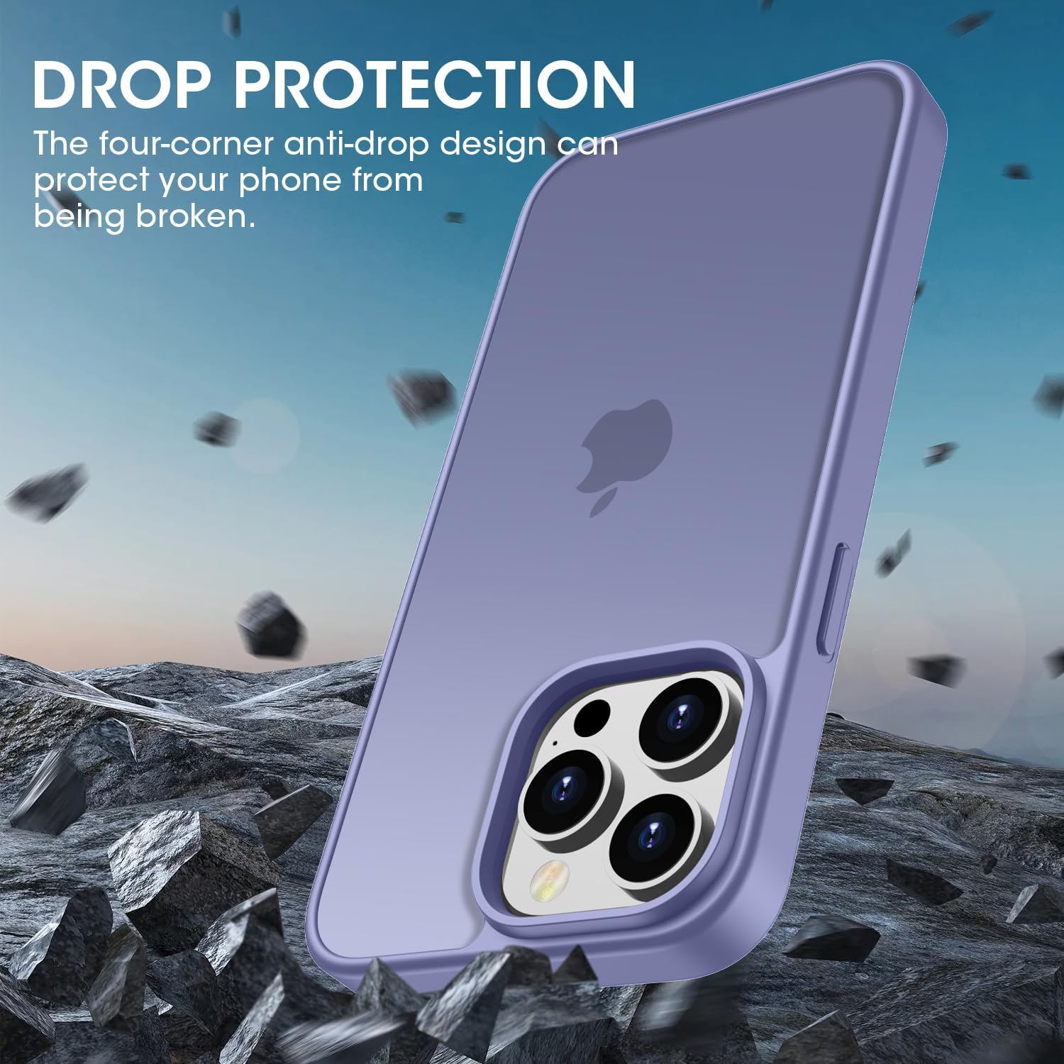 Матов калъф HGH за iPhone 13 Pro Max 6.7 инча, военна защита, защитен калъф от кадифено покритие, матов, устойчив на надраскване, прозрачен защитен калъф за гръб, против пръстови отпечатъци (лилав)