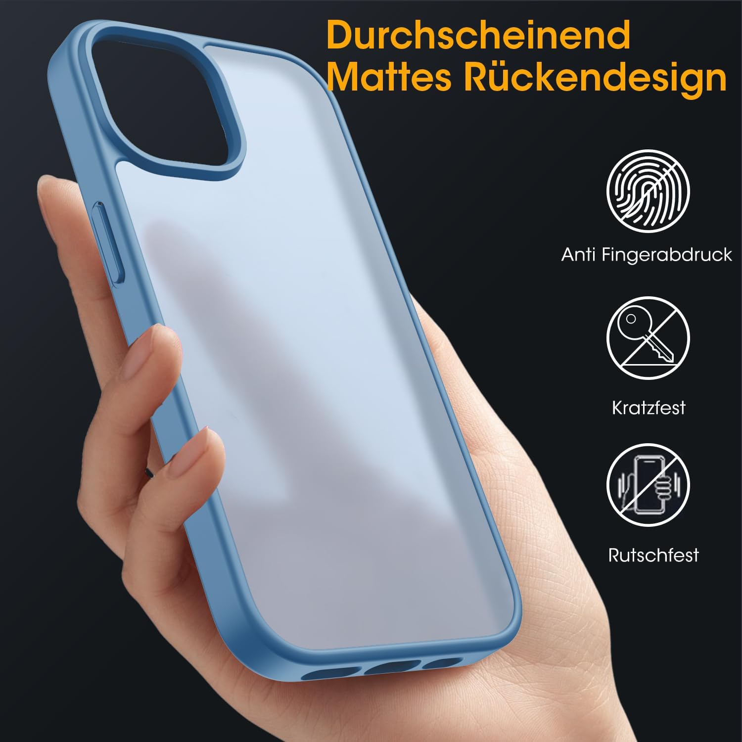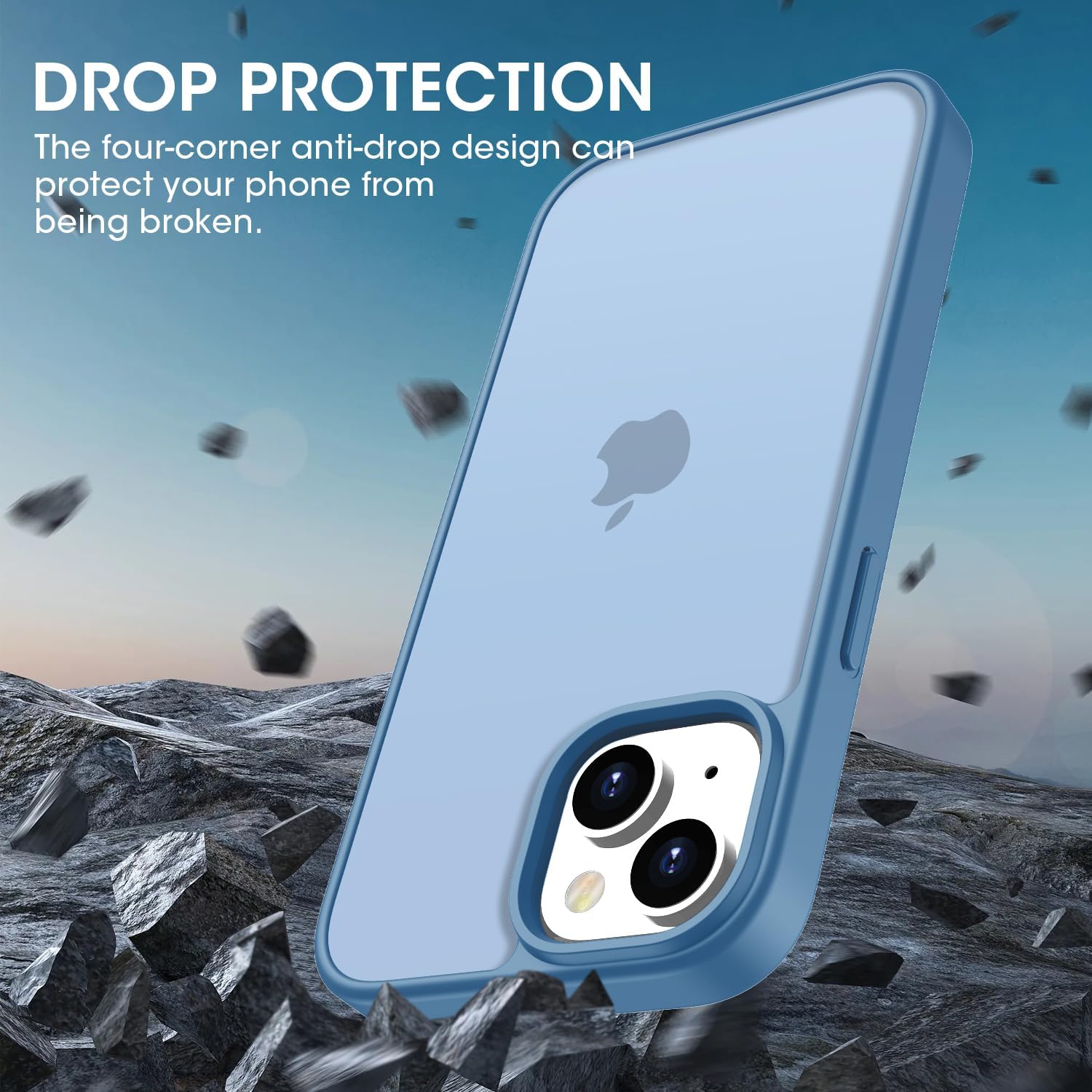 Матов калъф HGH за iPhone 13/14 6.1 инча, военна защита, кадифено покритие, матов, устойчив на надраскване, прозрачен гръб, калъф за мобилен телефон против пръстови отпечатъци за iPhone 14/13 (бебешко син)