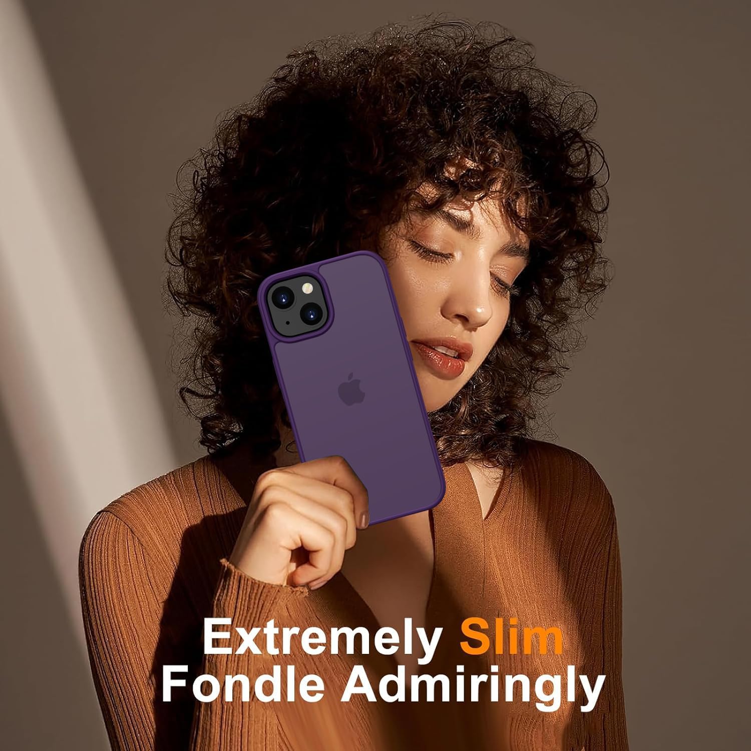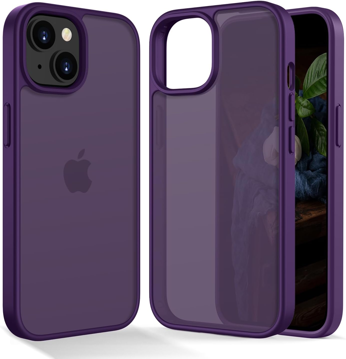 Матов калъф HGH за iPhone 13/14 6.1 инча, военна защита, кадифено покритие, матов, устойчив на надраскване, прозрачен гръб, калъф за мобилен телефон против пръстови отпечатъци за iPhone 14/13 (тъмно лилав)